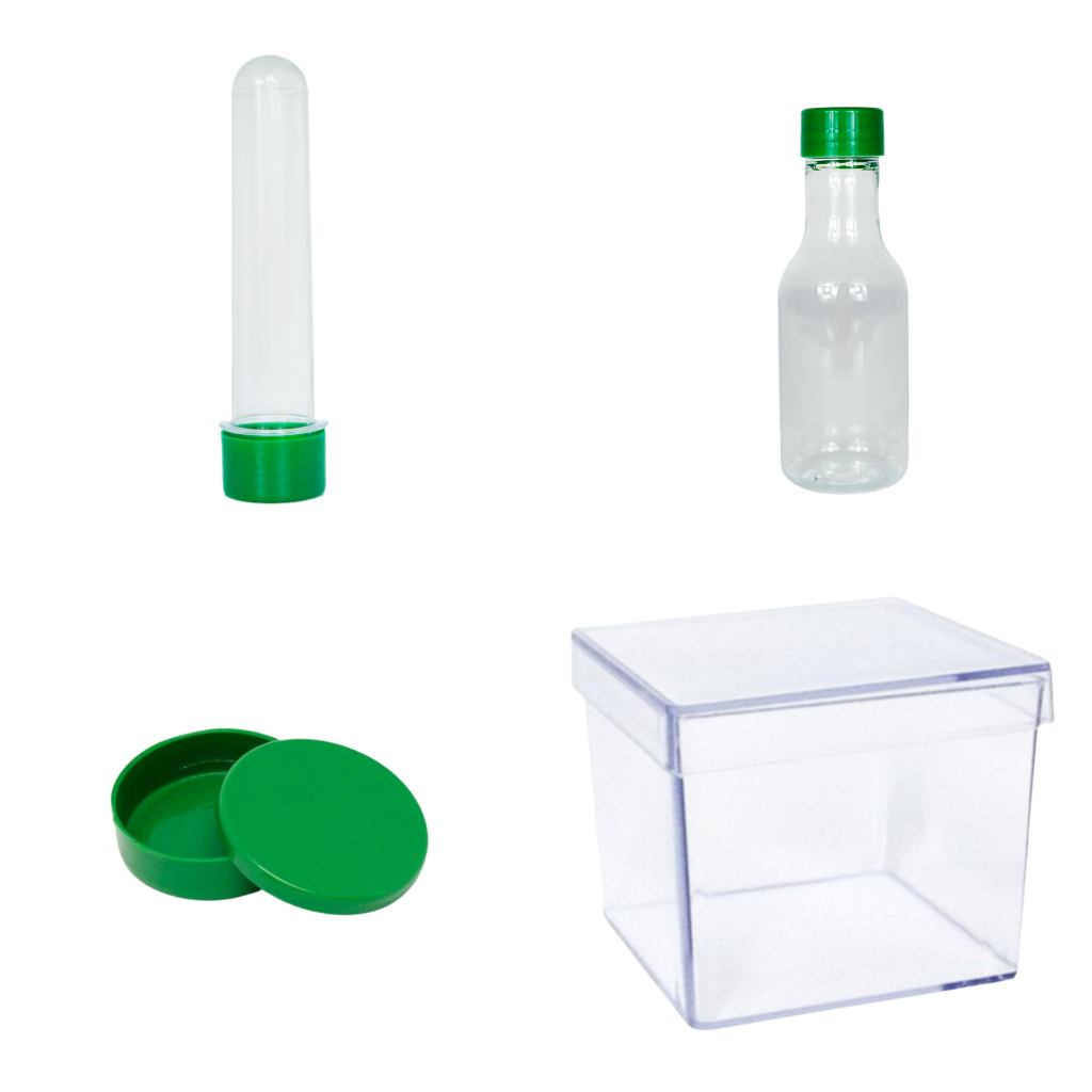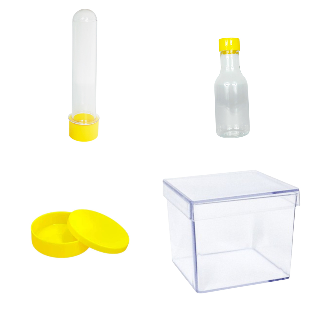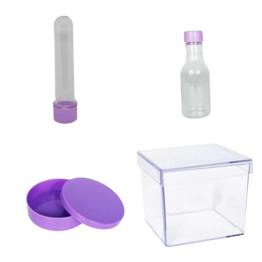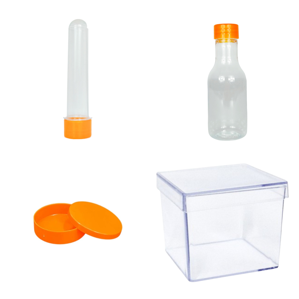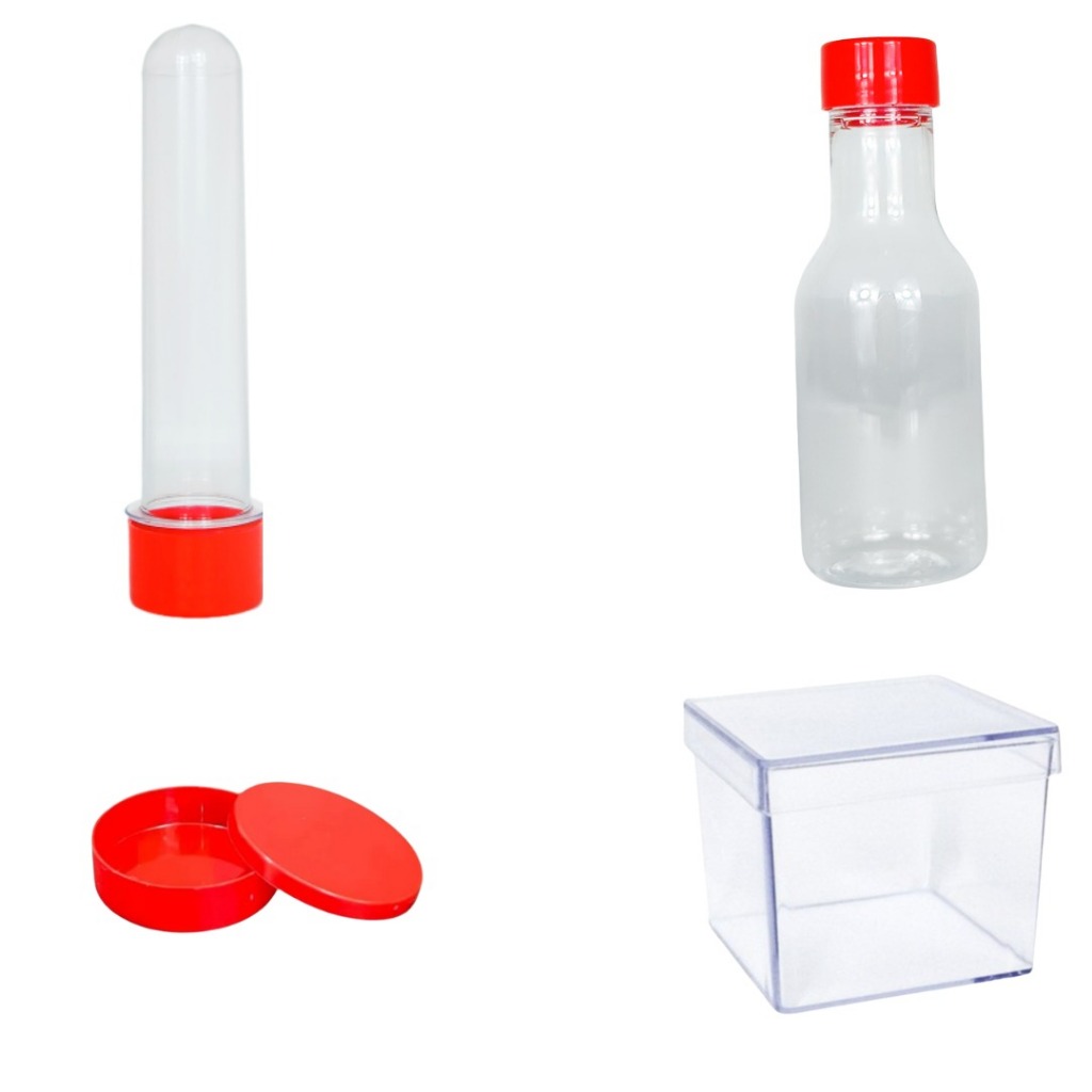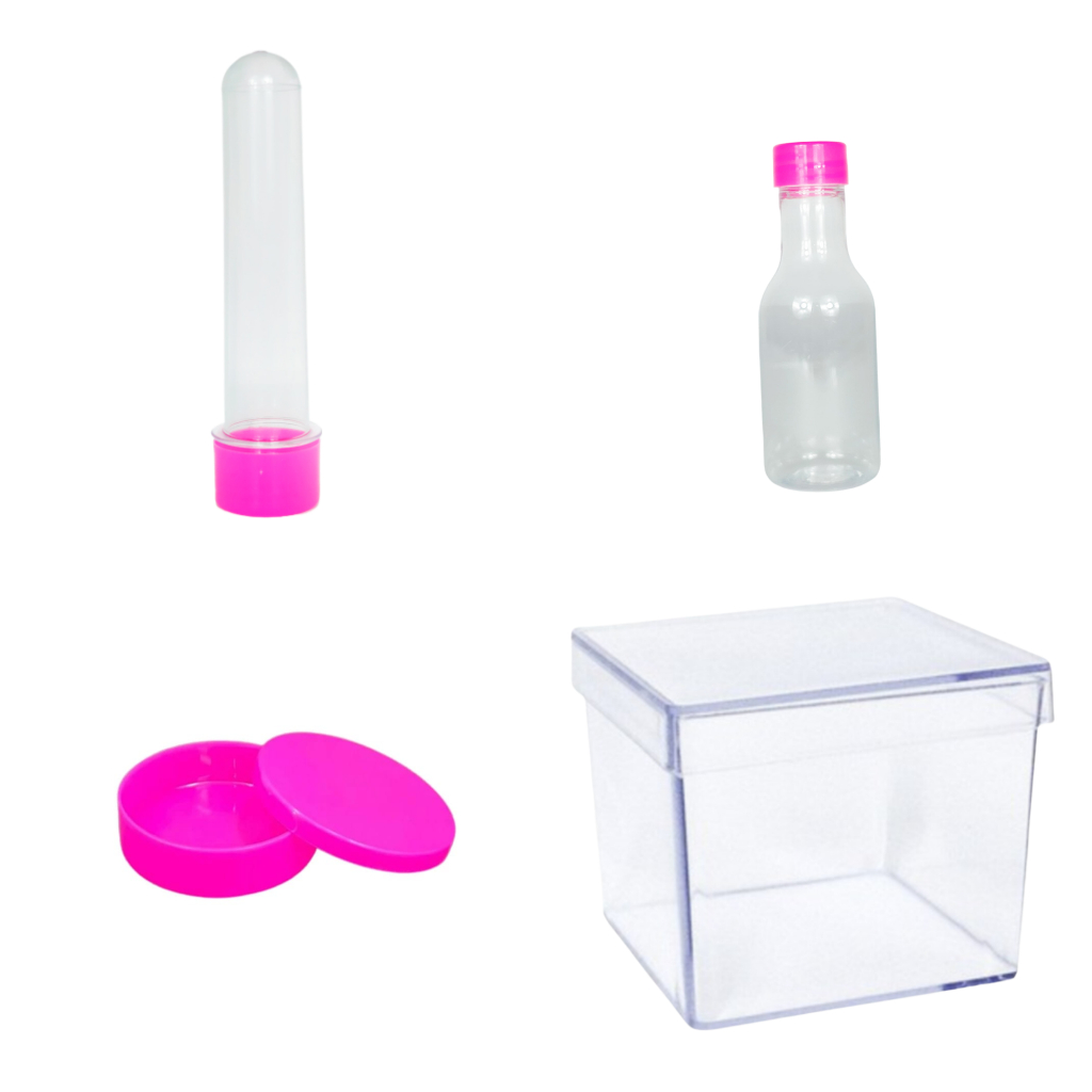 Kit Festas 10 Caixas acrilicas 5x5 10 Tubetes 13 cm 10 Latinhas 5x1 -e 10 Garrafinhas- lembrancinhas