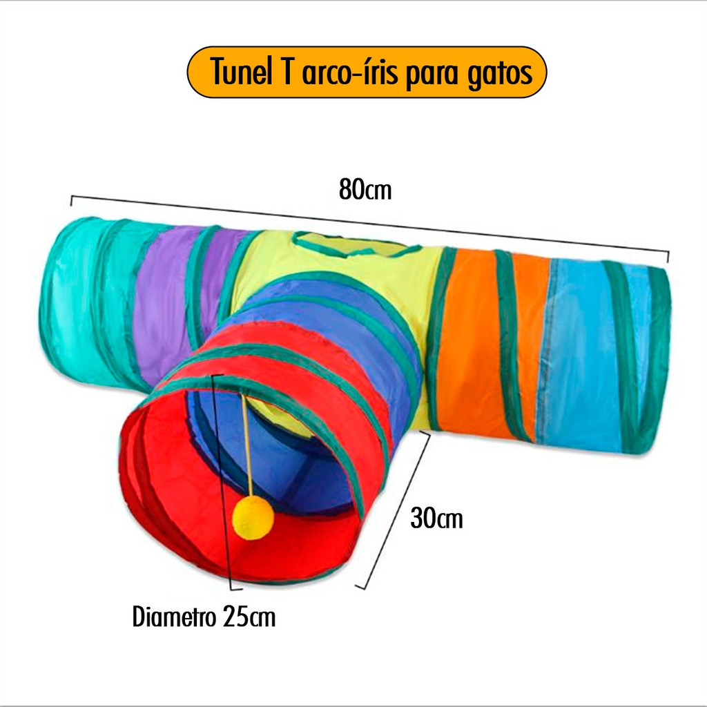 Túnel Labirinto Para Gatos Cães Interativo Cat Brinquedo Pet Cor Arco-íris T