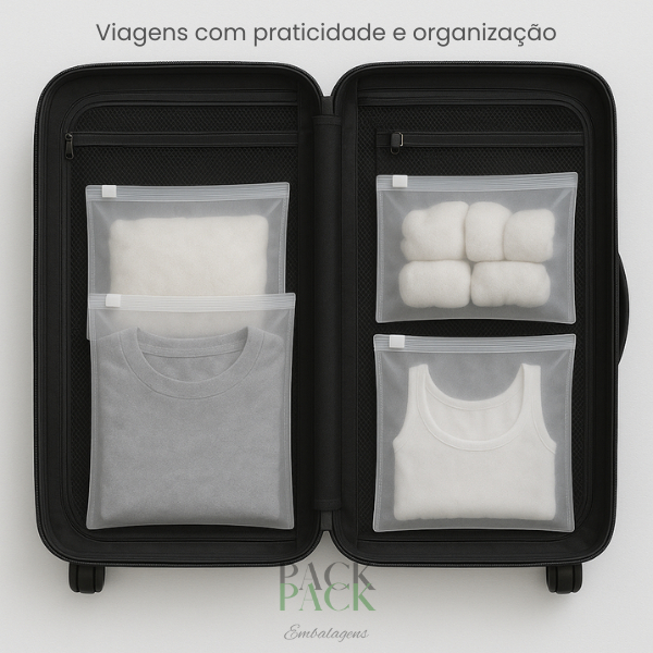 Saco Saquinho Plástico Fosco Zip Branco Para Roupas | Organizador - Abre e Fecha EVA 20 e 40un