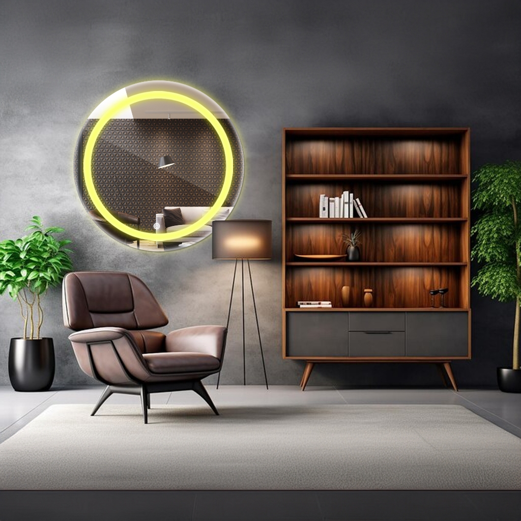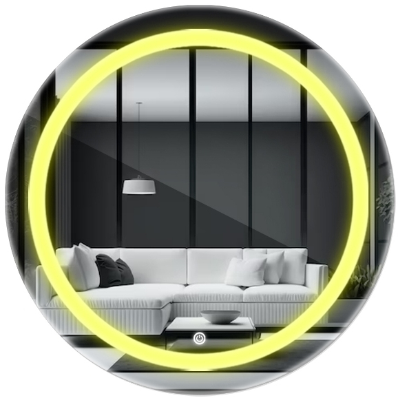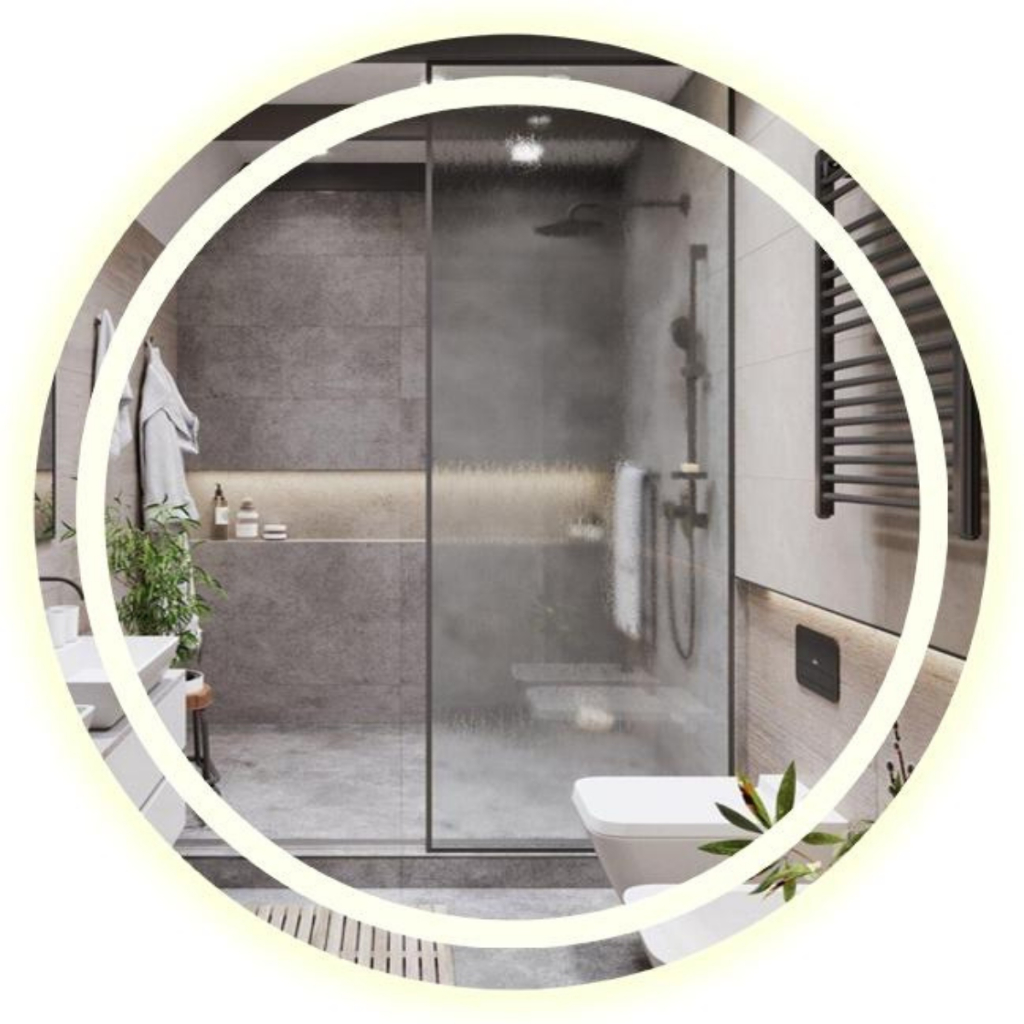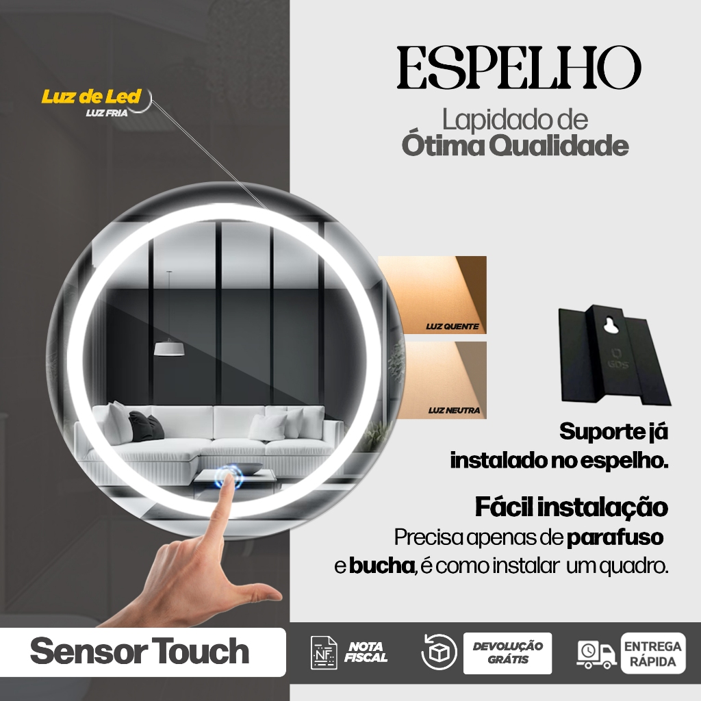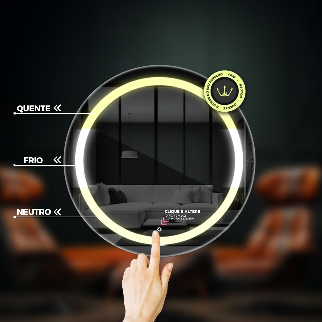 Espelho Redondo Jateado com Led 3 Cores 70x70cm Lapidado Decoração Parede Quarto Banheiro