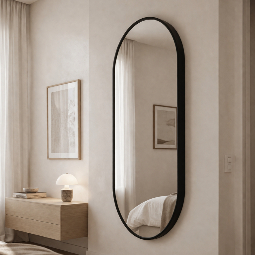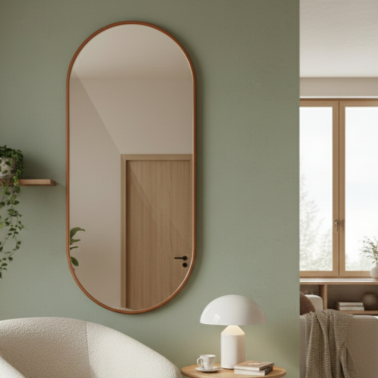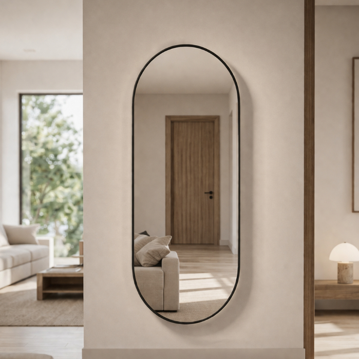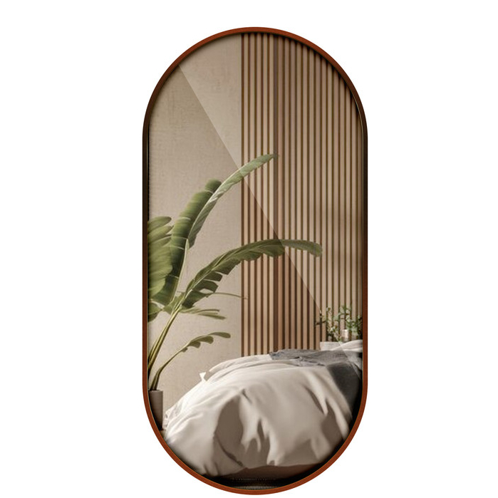 Espelho Oval Com Moldura em Couro 40 a 120cm Decorativo Preto ou Caramelo