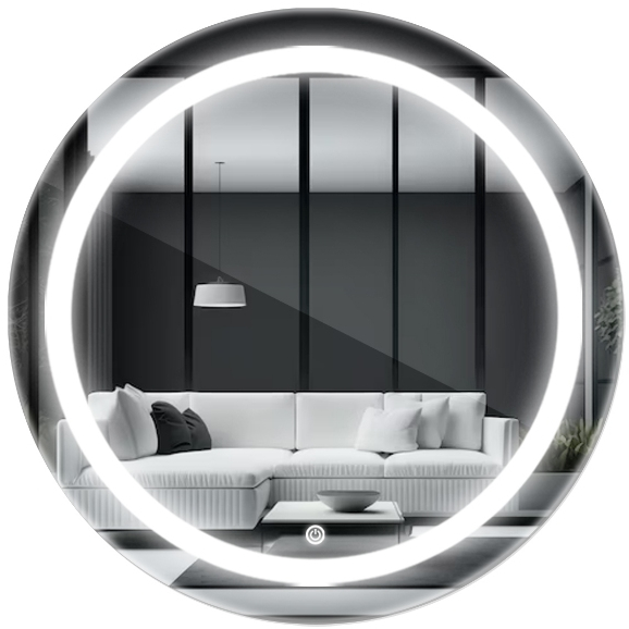 Espelho Redondo Jateado 80x80cm Com Led 3 Cores Decoração de Parede Lapidado