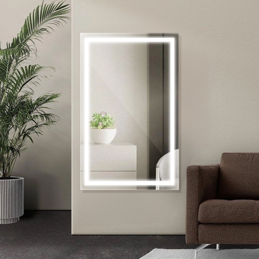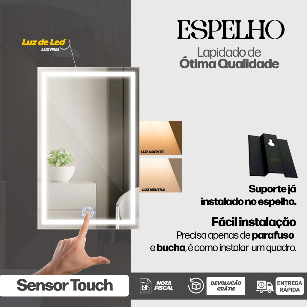Espelho Retangular Grande Jateado com Led 3 Cores 80x90cm Maquiagem Lapidado Decoração Salão Oferta