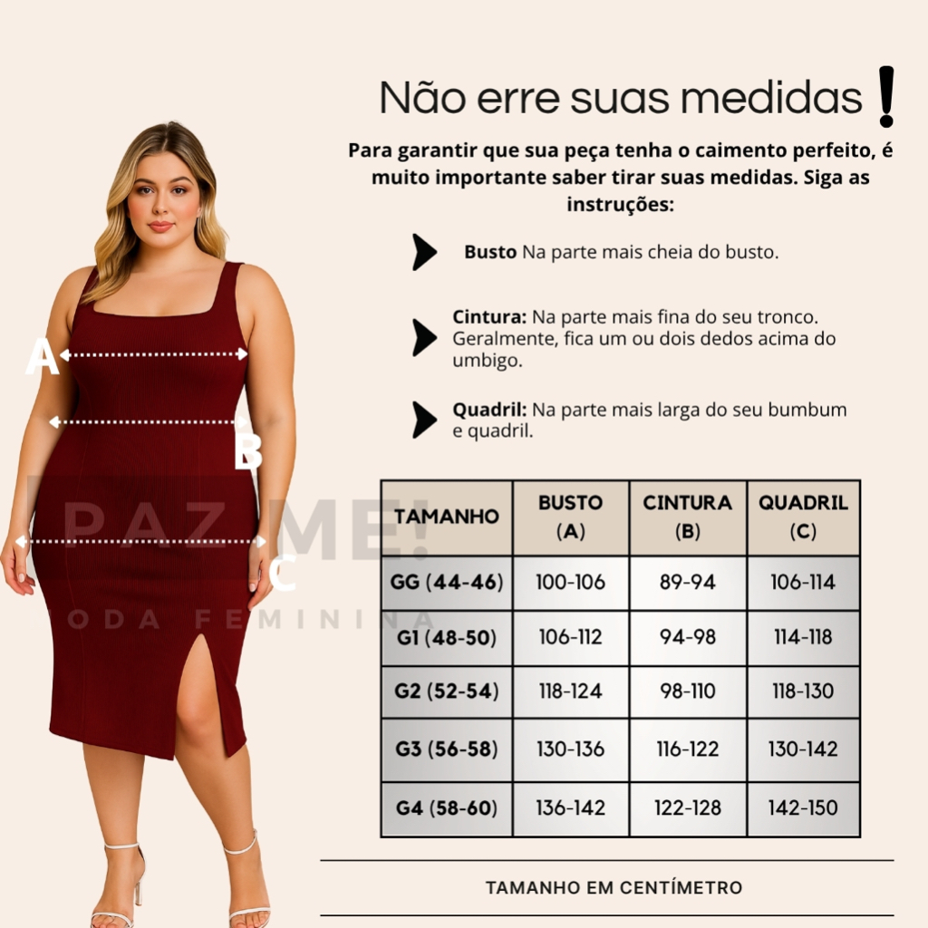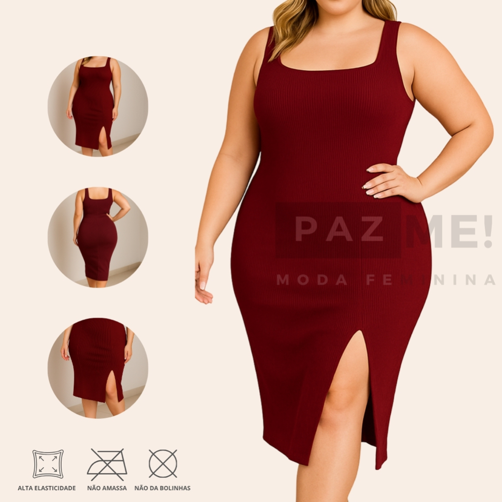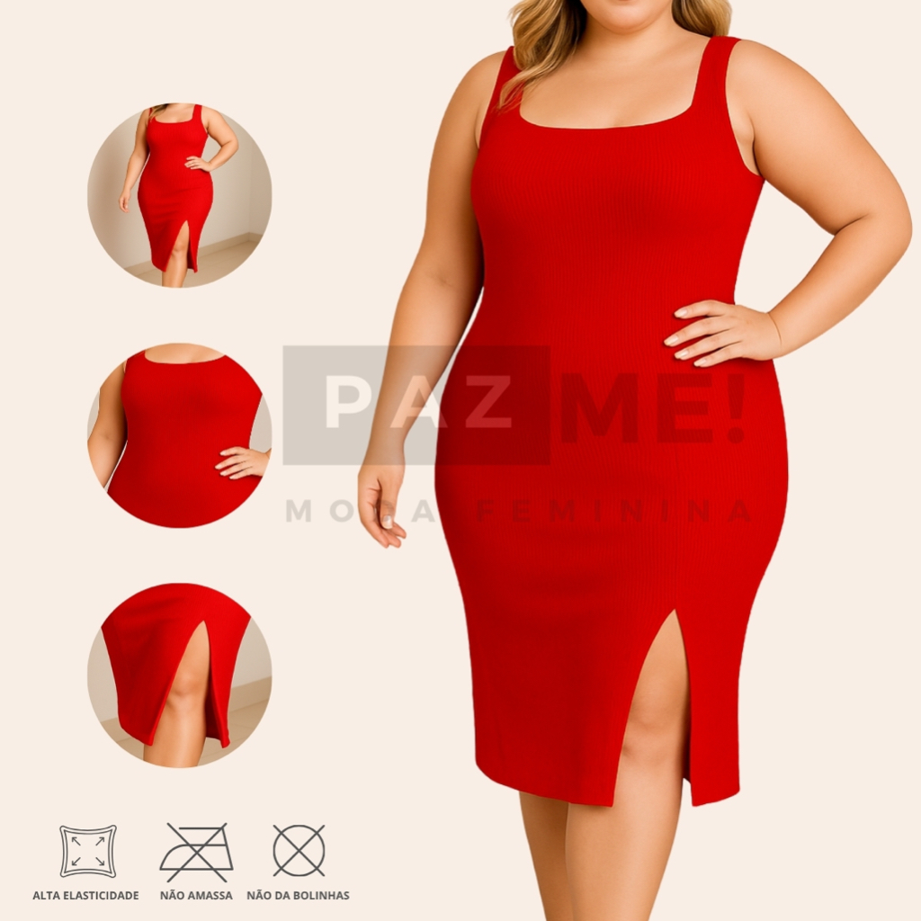 Vestido Midi Plus Size Regata Gola Quadrada Com Fenda Frontal PAZME