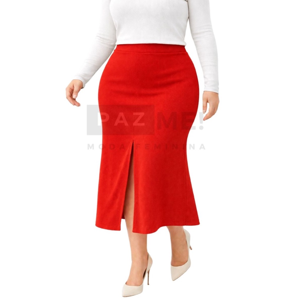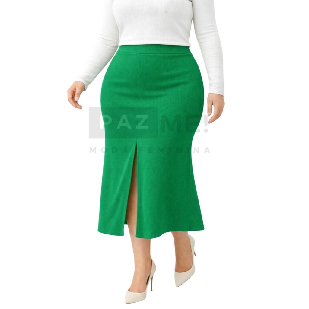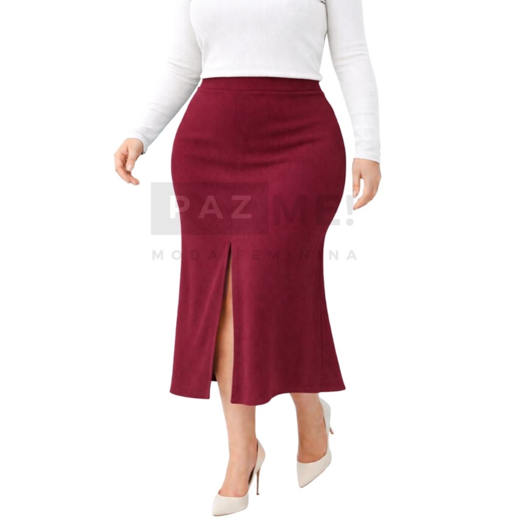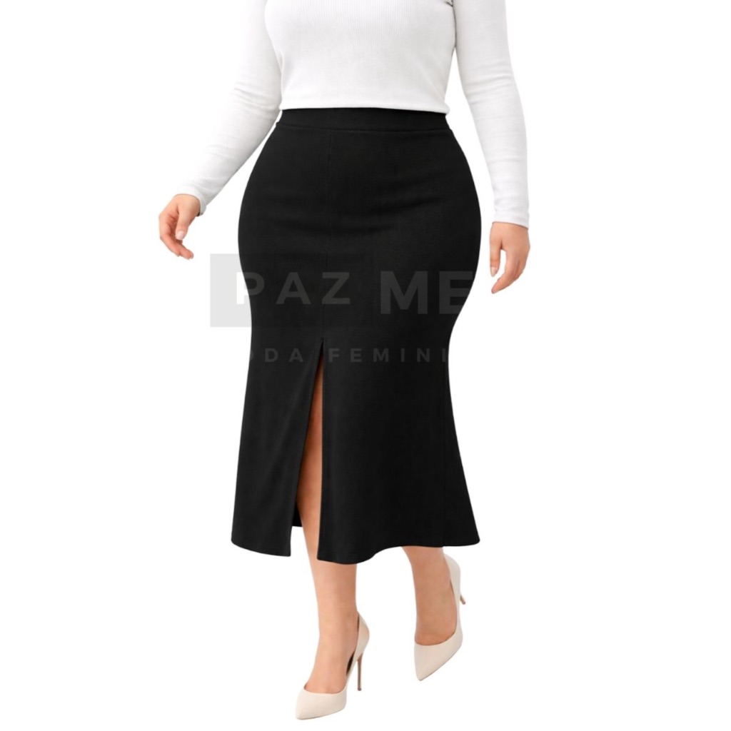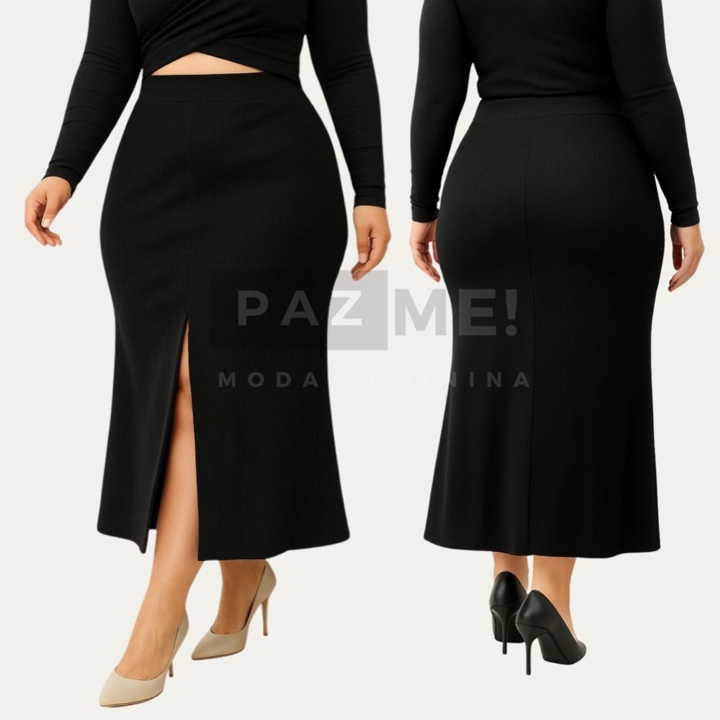 Saia Longa PAZME Plus Size Cintura Alta Com Fenda Frontal