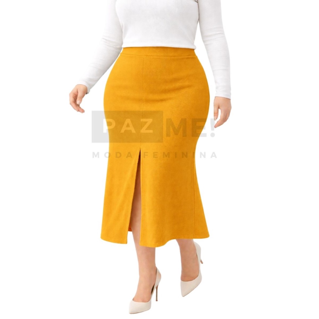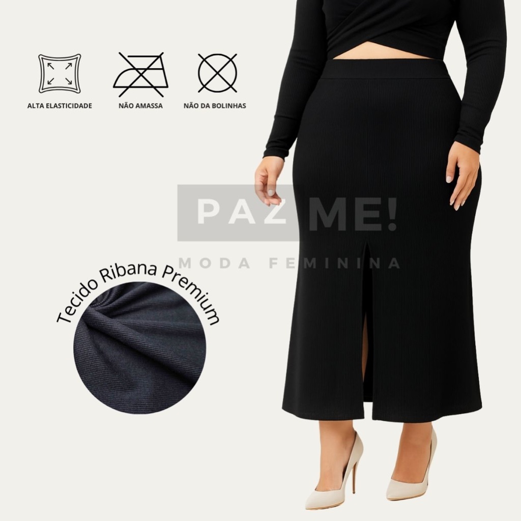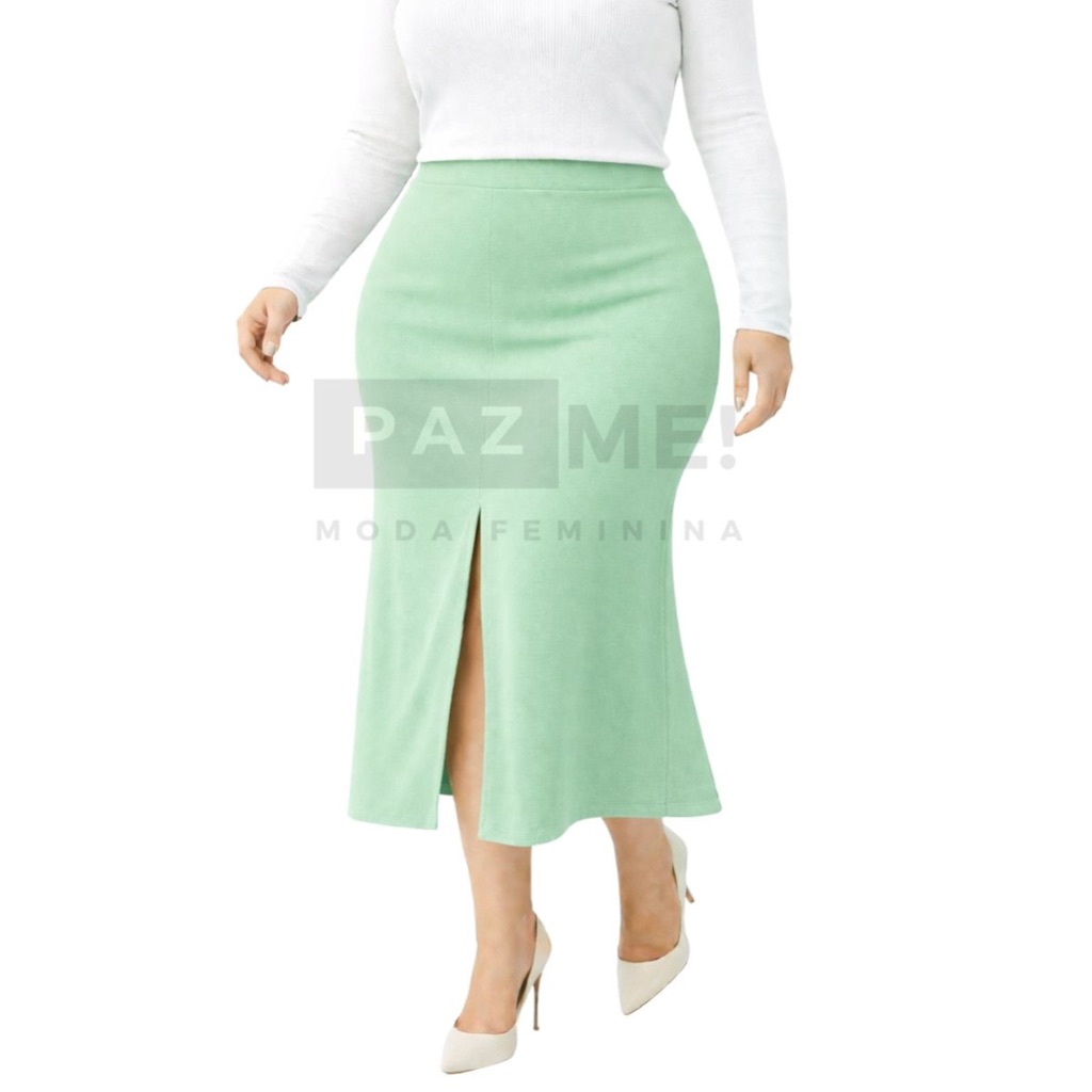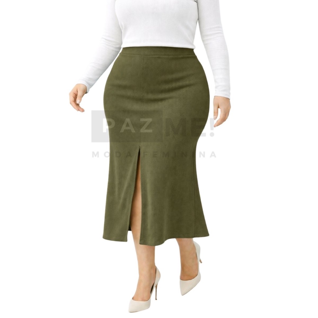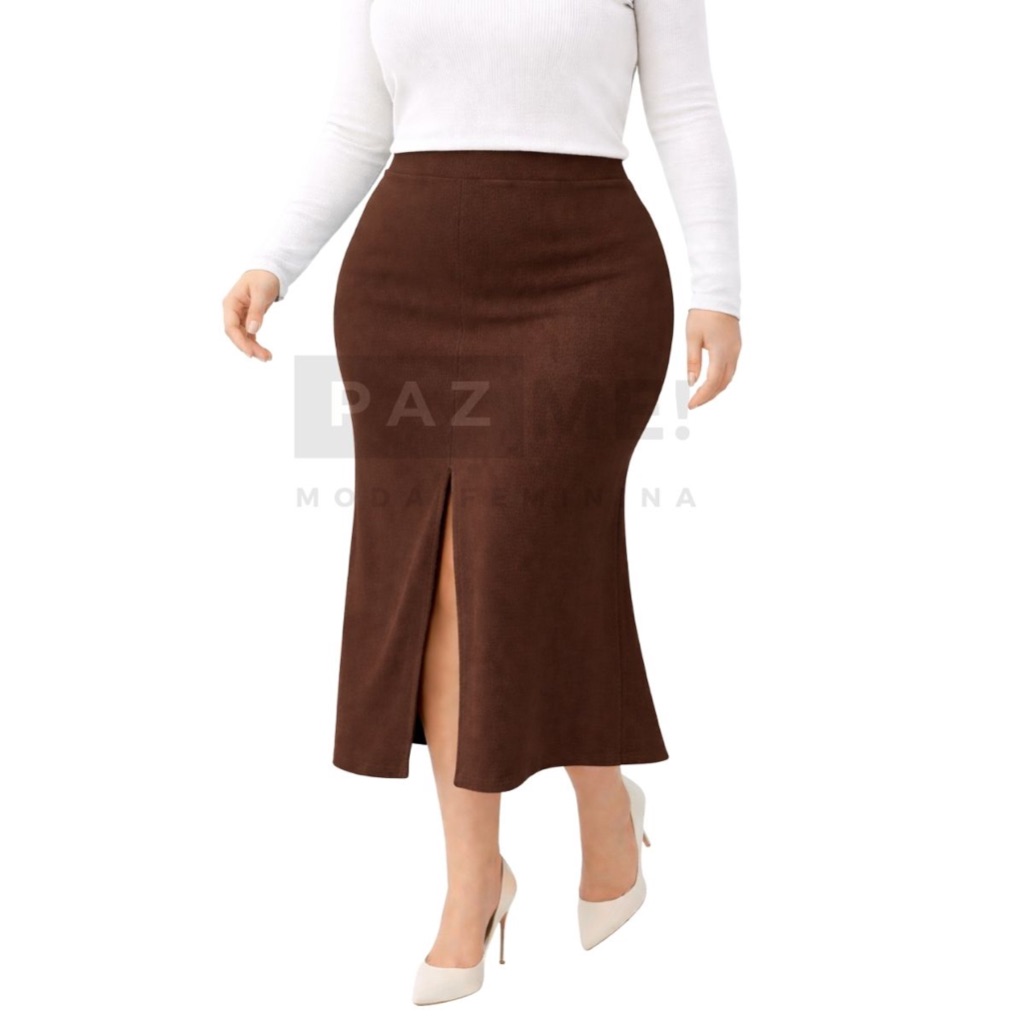 Saia Longa PAZME Plus Size Cintura Alta Com Fenda Frontal