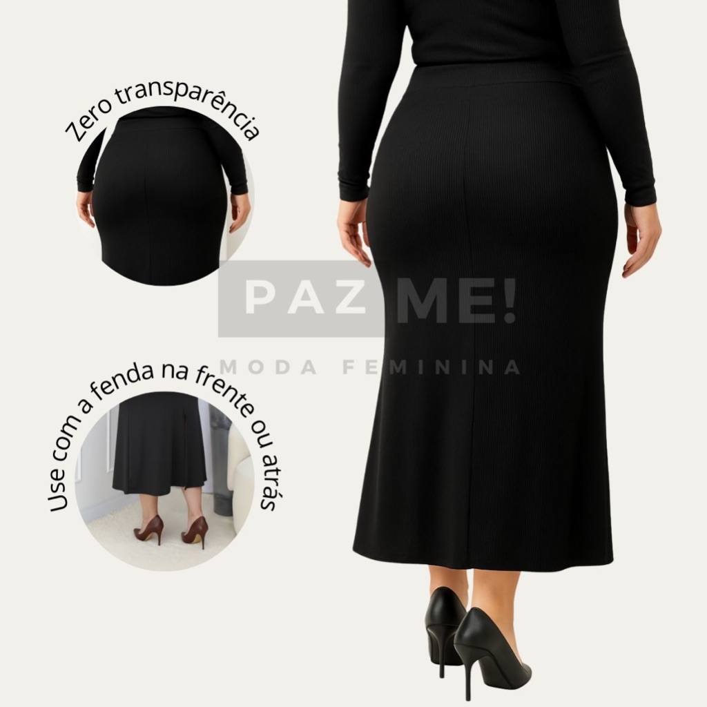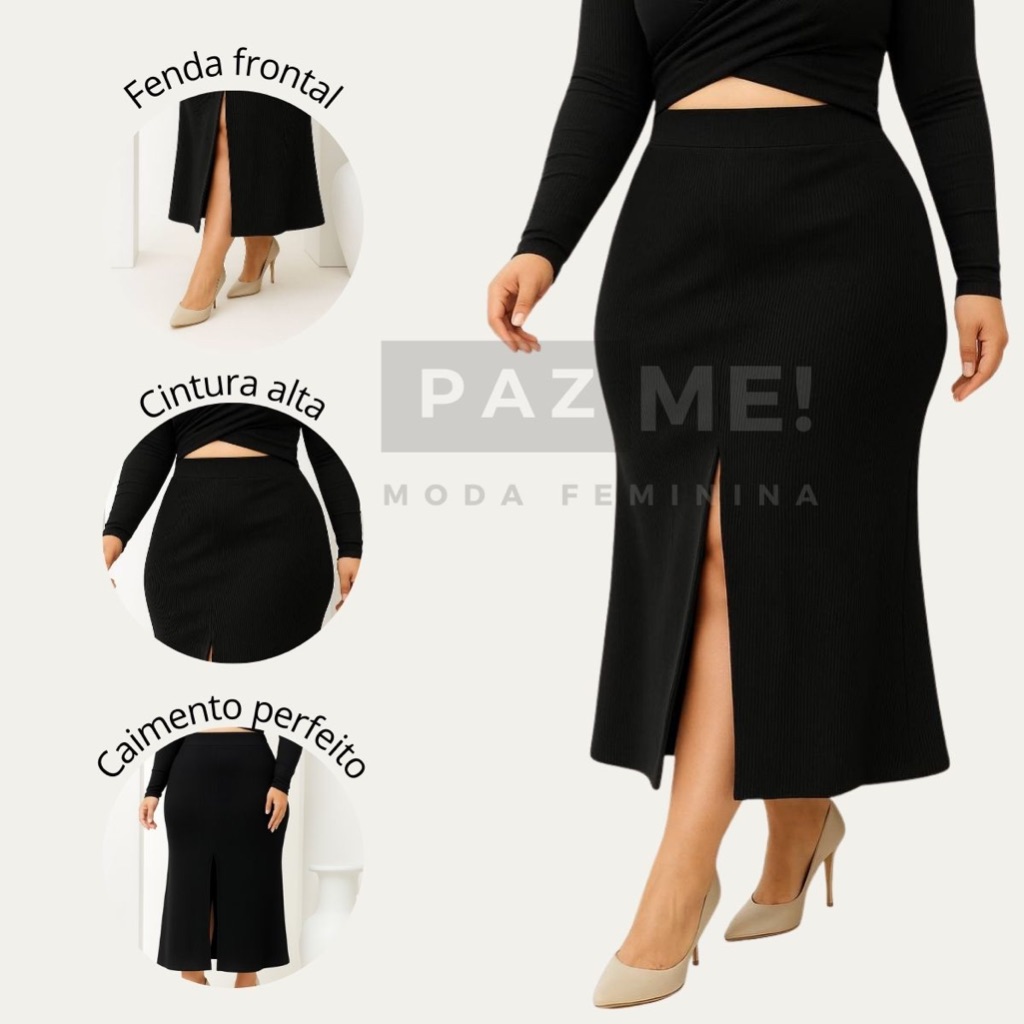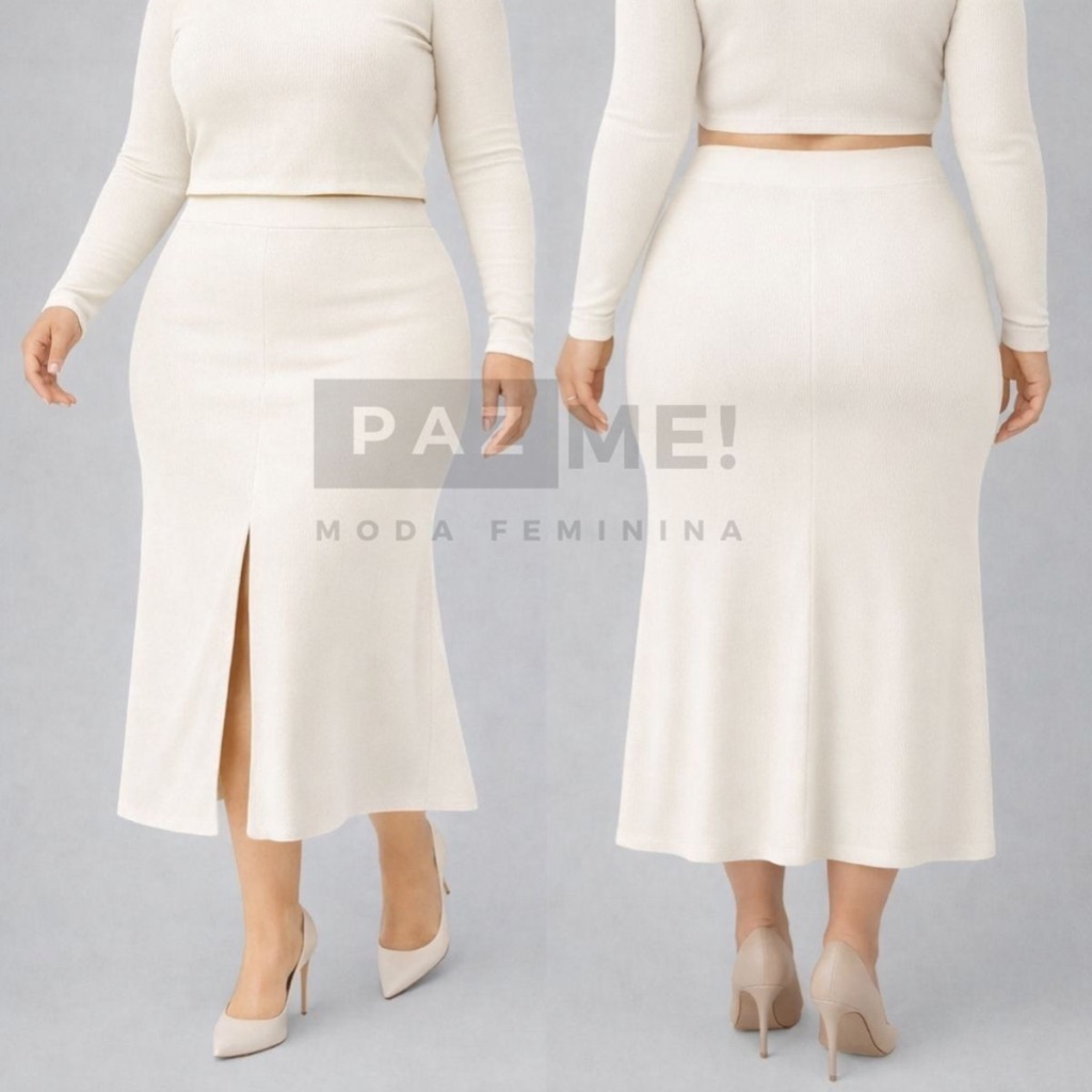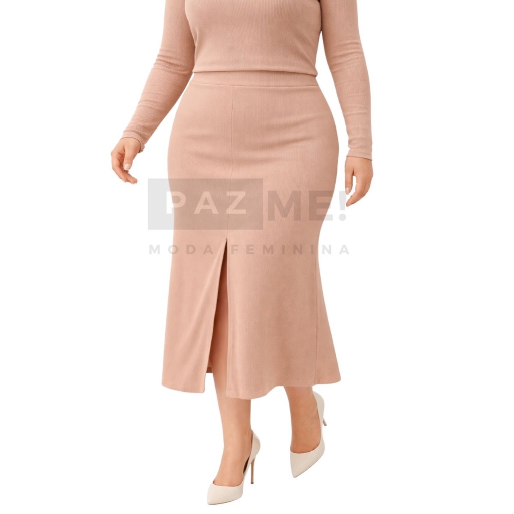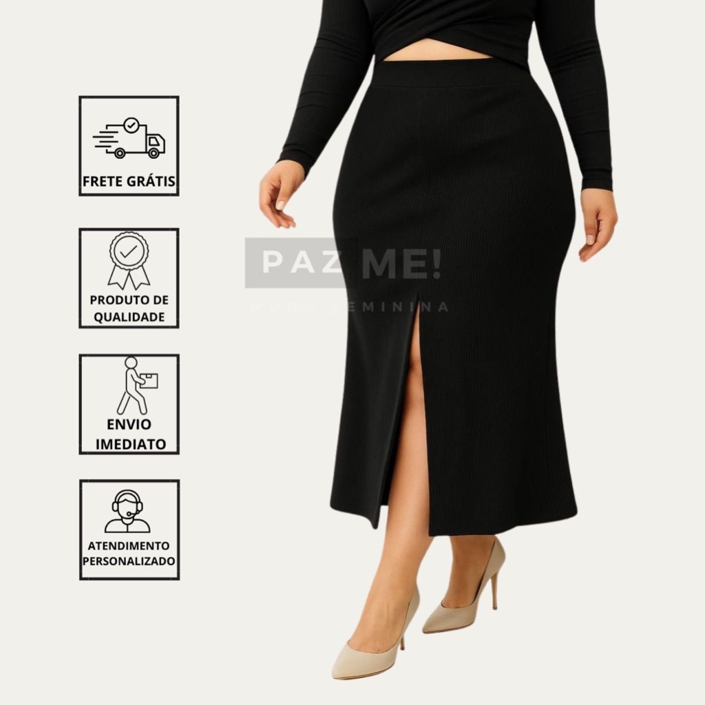 Saia Longa PAZME Plus Size Cintura Alta Com Fenda Frontal