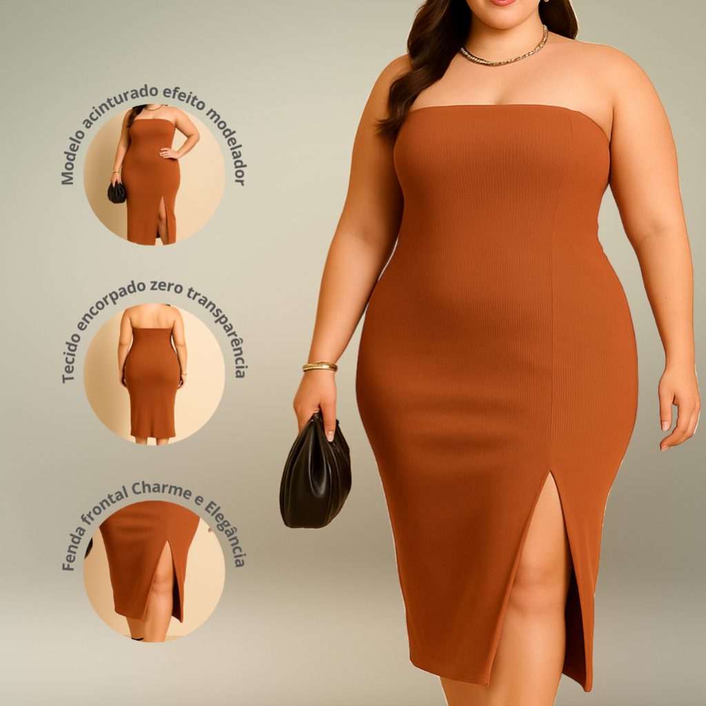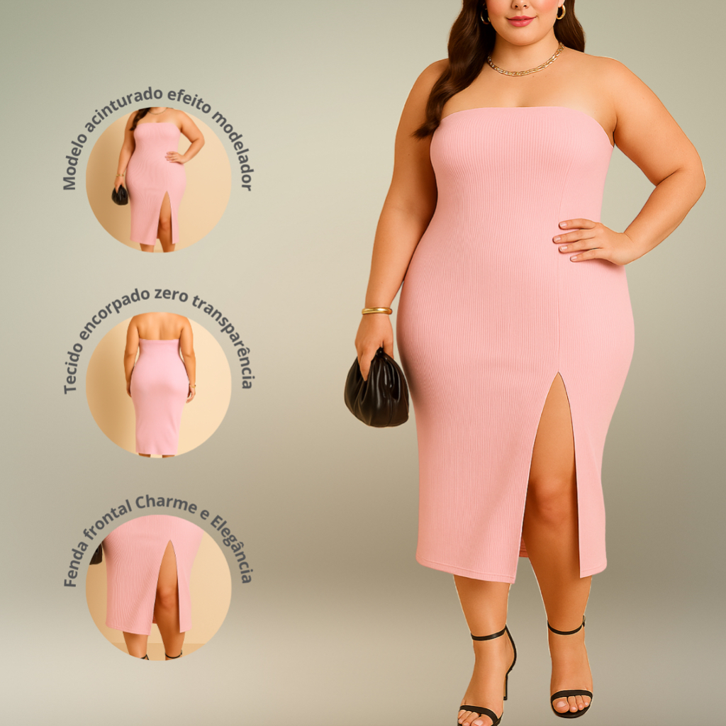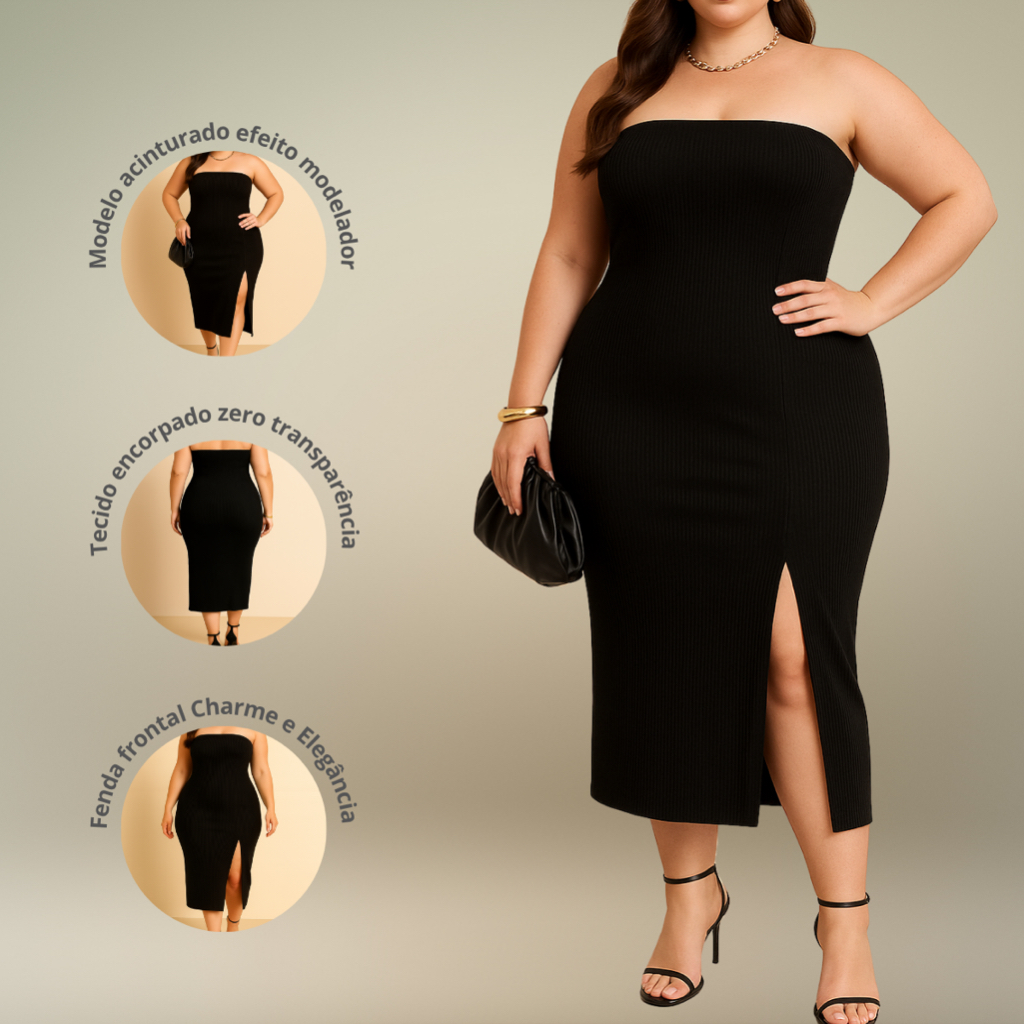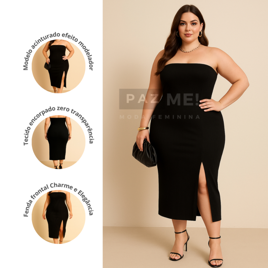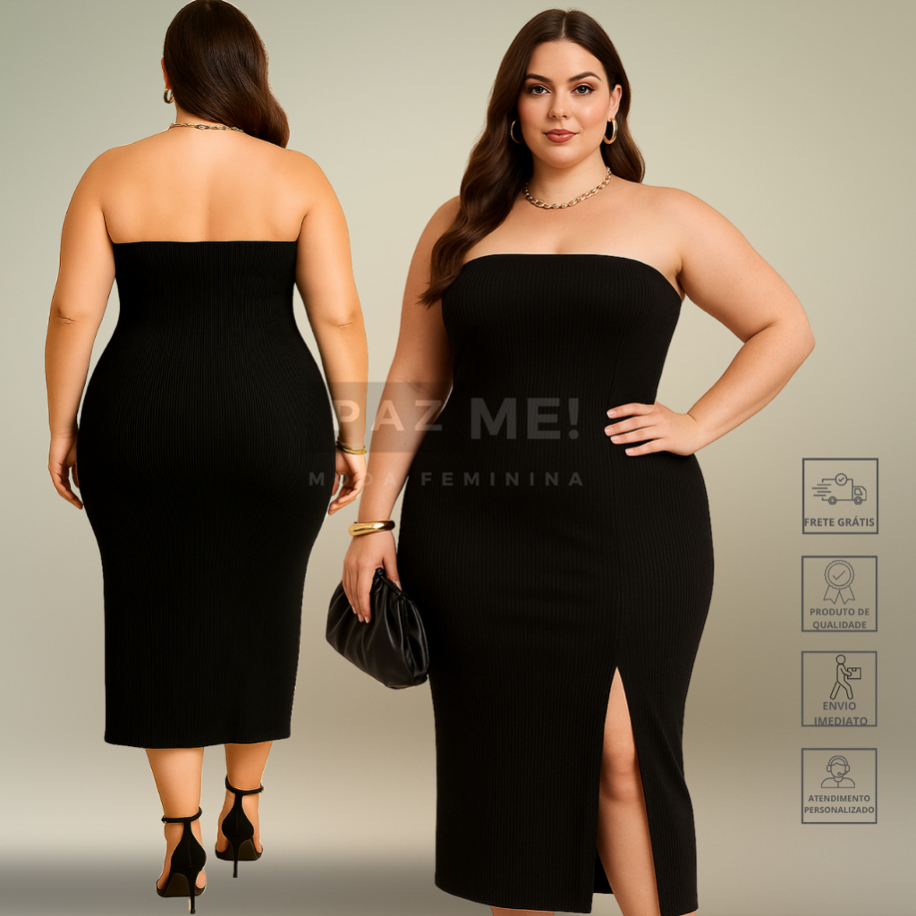 Vestido Midi PAZME Plus Size Tomara Que Caia Fenda Frontal