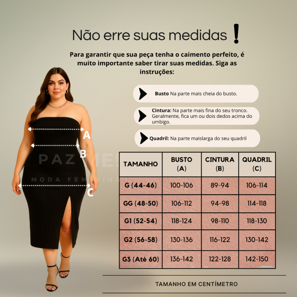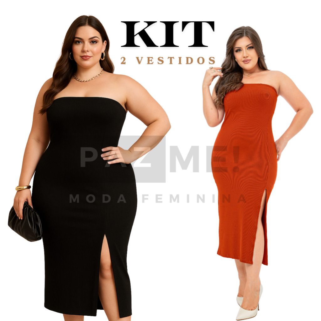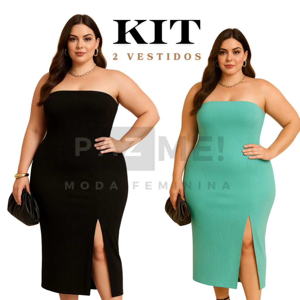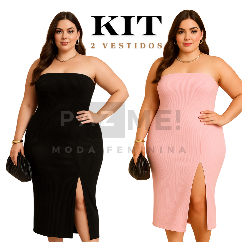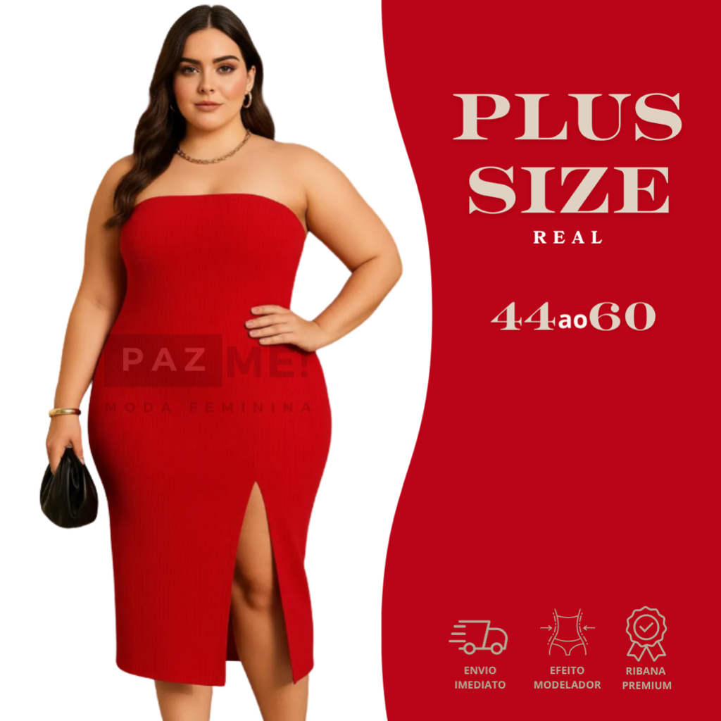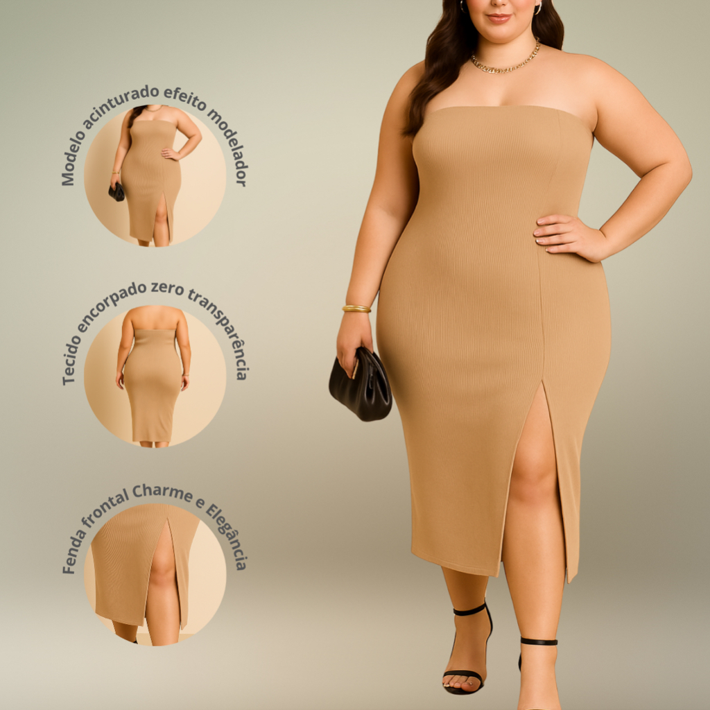 Vestido Midi PAZME Plus Size Tomara Que Caia Fenda Frontal