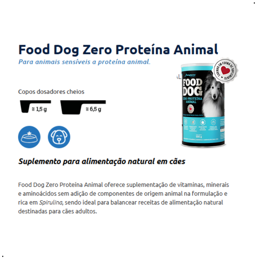 Food Dog Zero Proteína Animal 500g - Suplemento Vitamínico, Mineral e Aminoácido para Cães