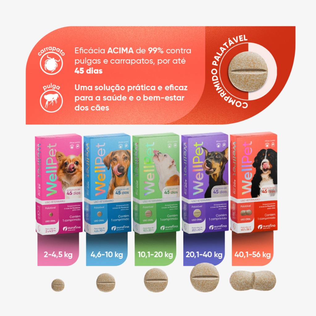 Antipulgas Carrapatos Wellpet Cão Ourofino 200mg 10,1 A 20kg