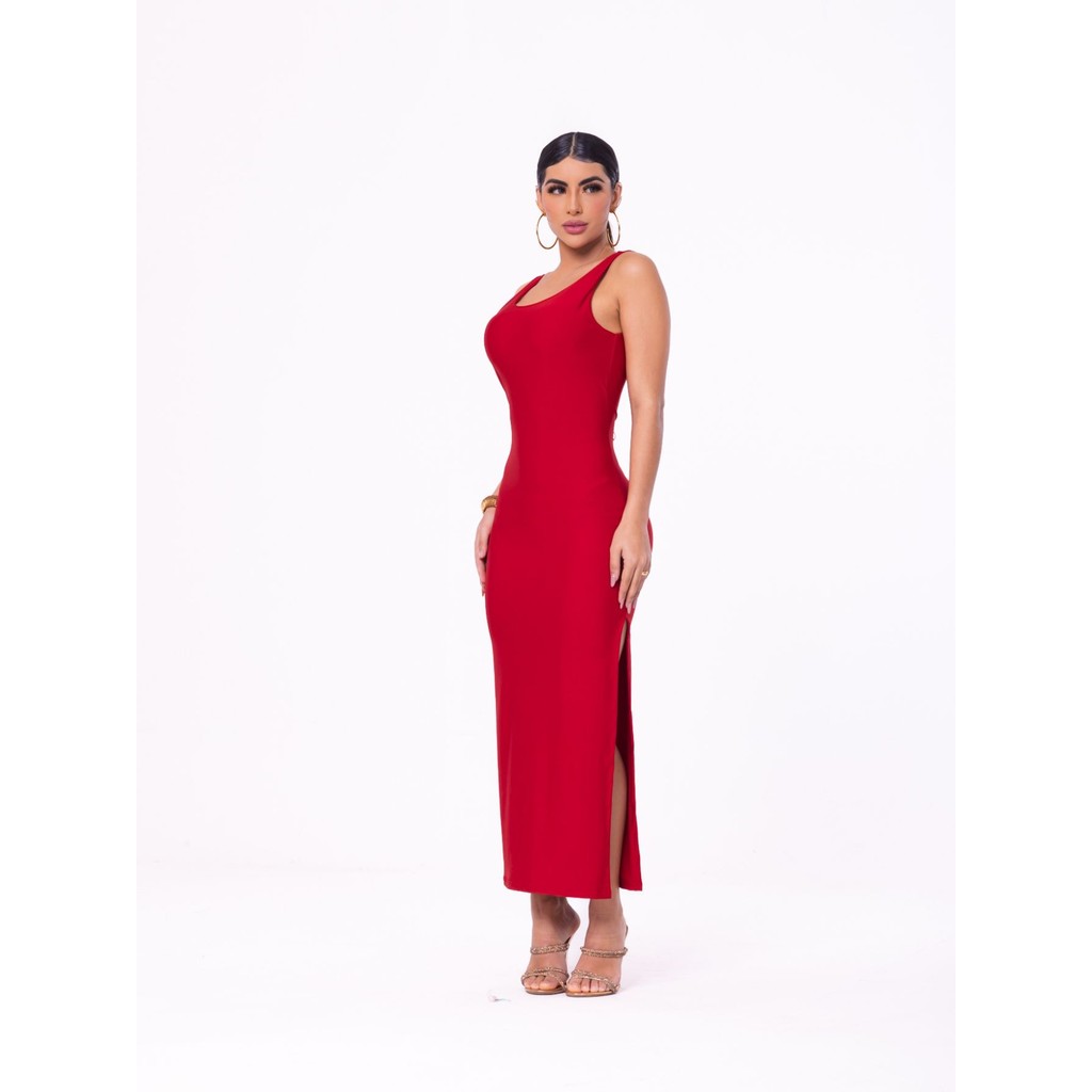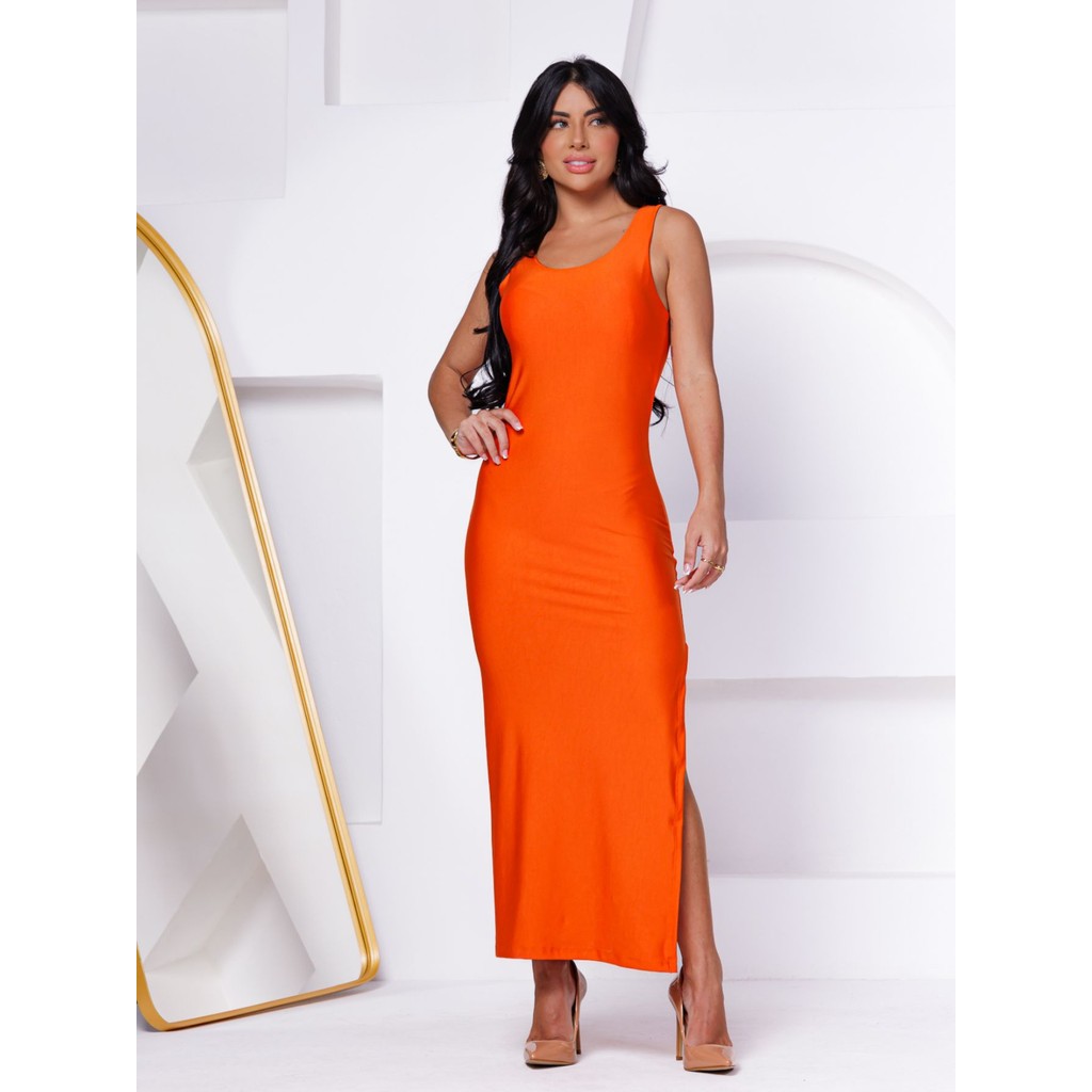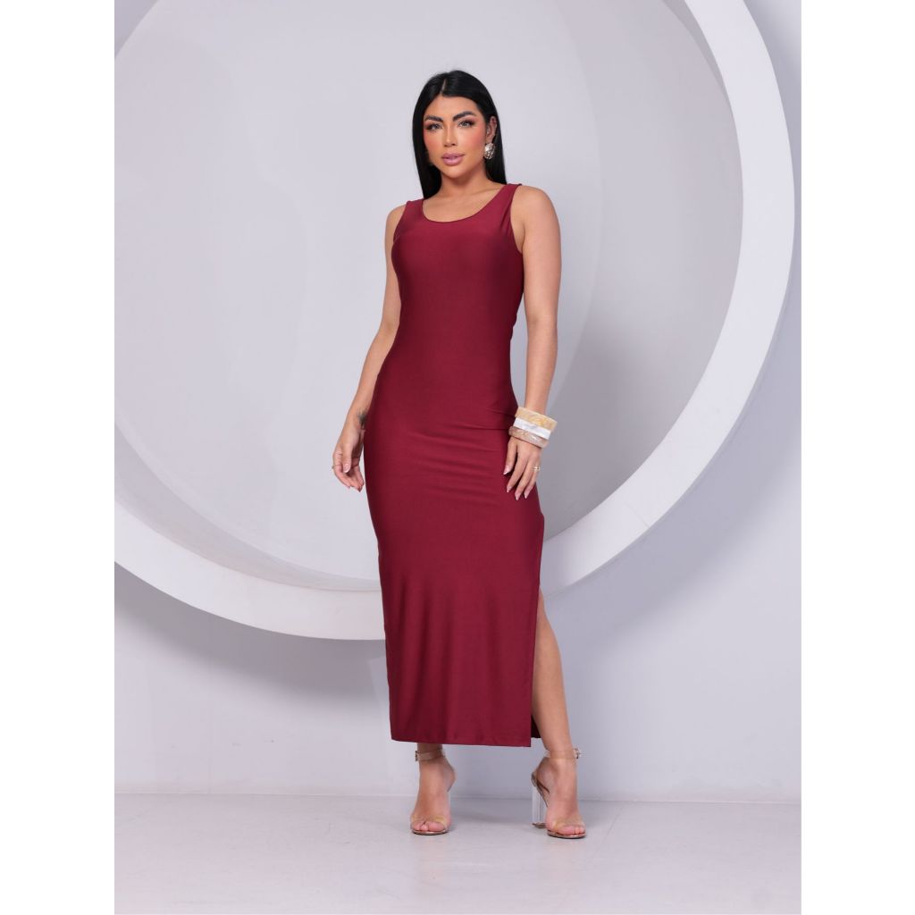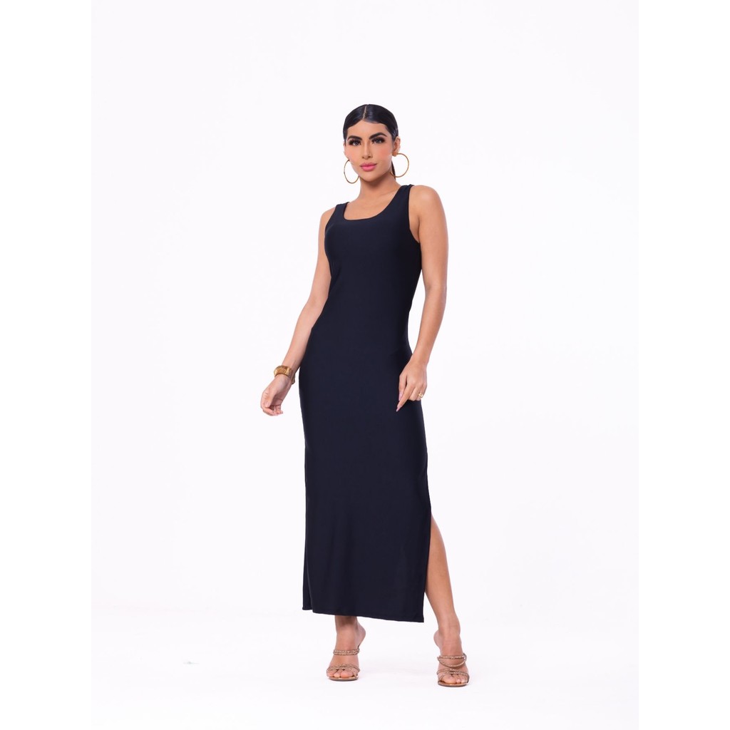 VESTIDO FEMININO MIDI REGATA FENDA LATERAL
