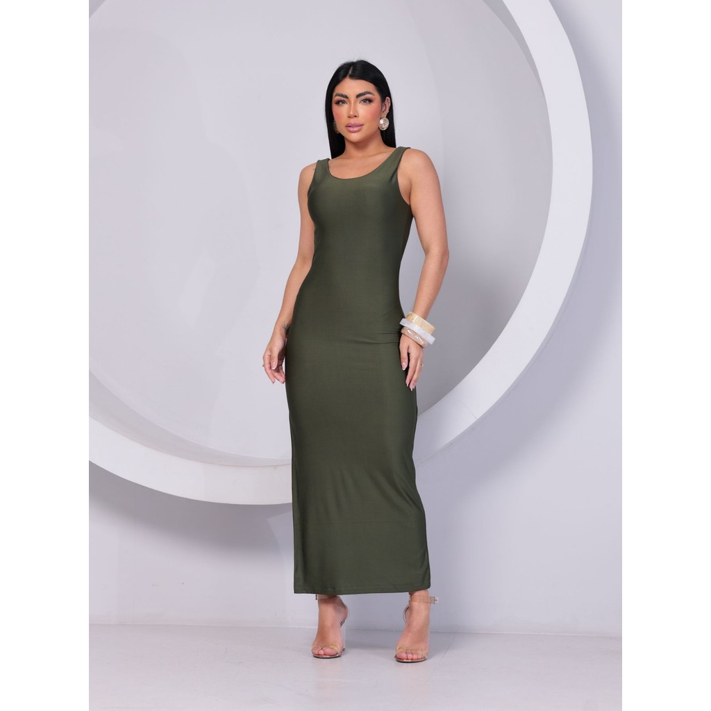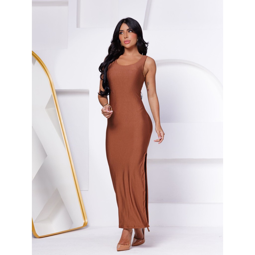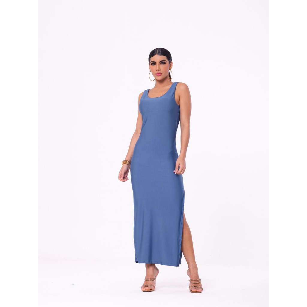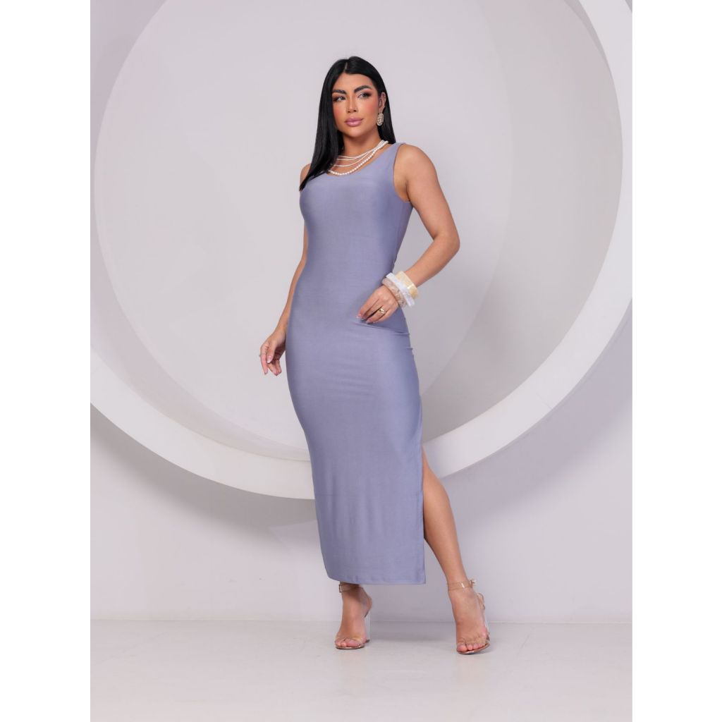 VESTIDO FEMININO MIDI REGATA FENDA LATERAL