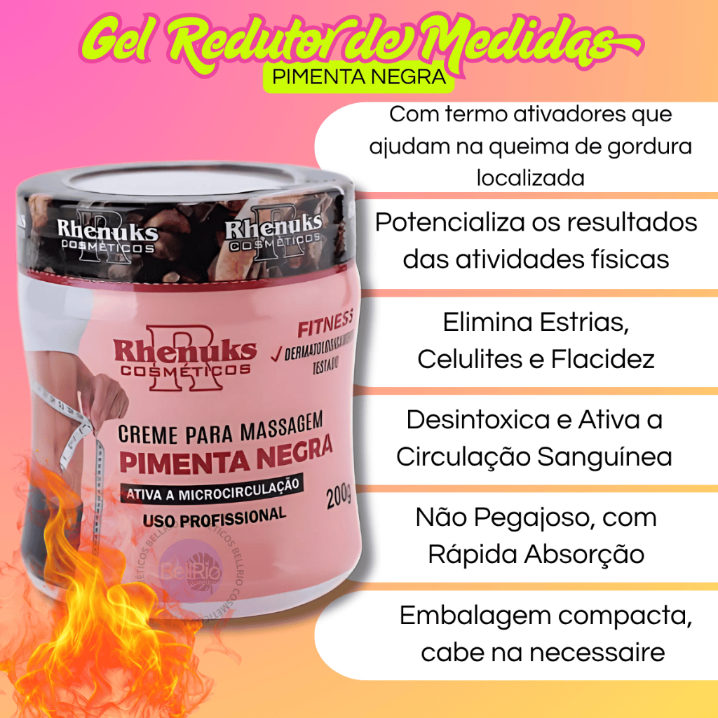 Gel Pimenta Negra Massageador Redutor de Medidas Rhenuks 200g