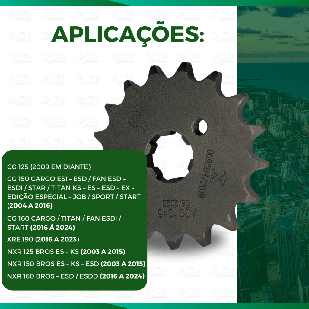 Pinhão 17 Dentes Bros 150 160 Cg Titan 160 Fan 150 Xre 190 Aço 1045