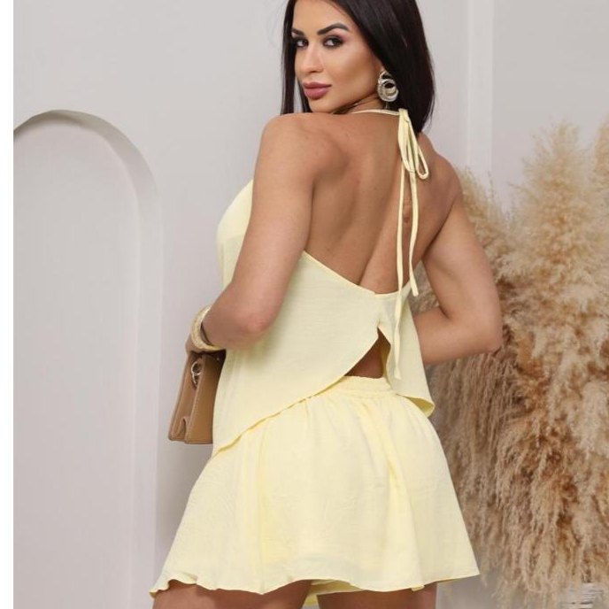 Conjunto Feminino Verão Short Saia Com Blusa Frente Única Decotada Casual Tendencia Elegante