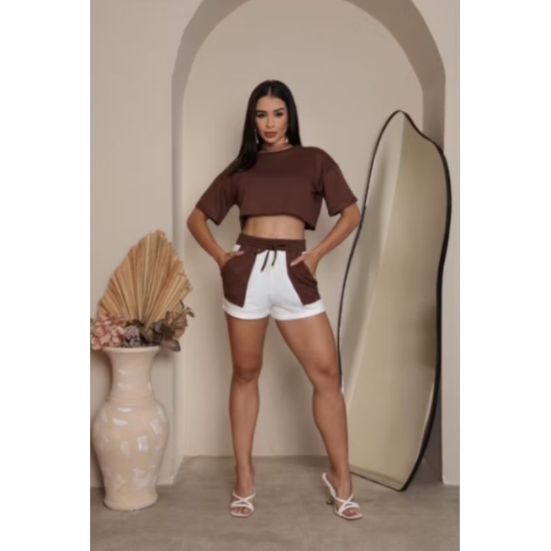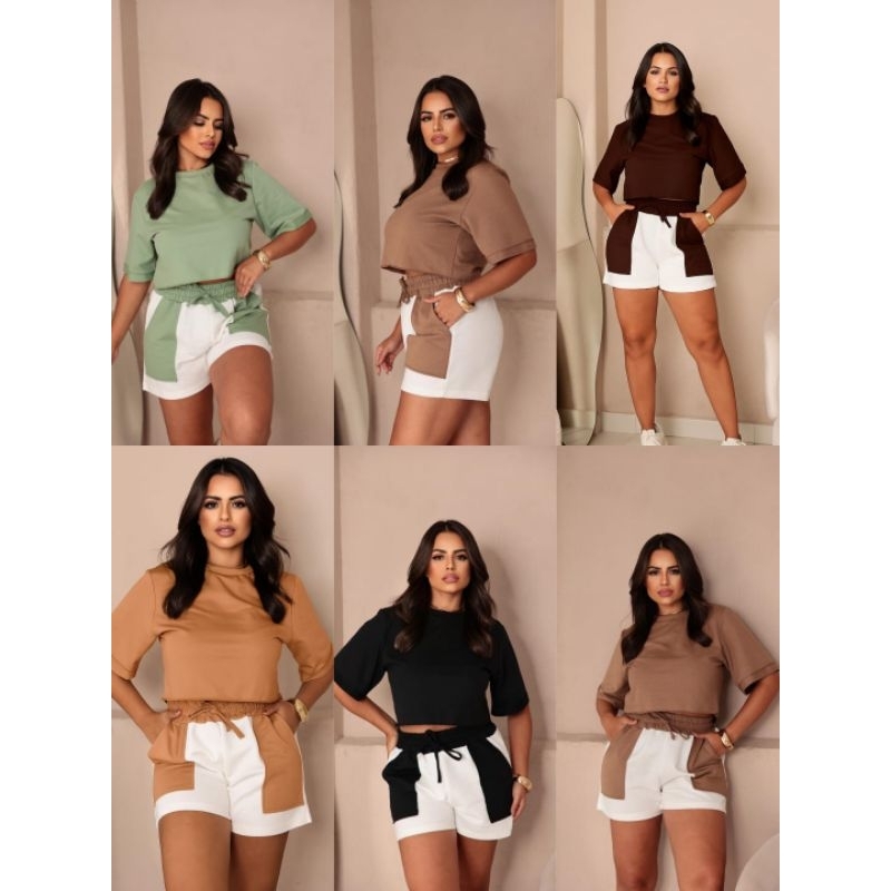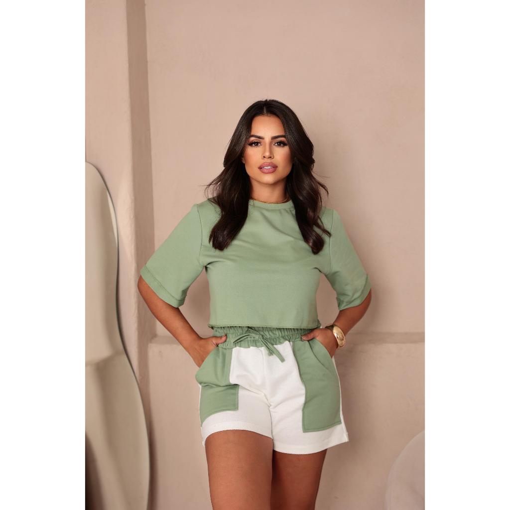Conjunto Feminino Moletinho bicolor Short e Blusinha