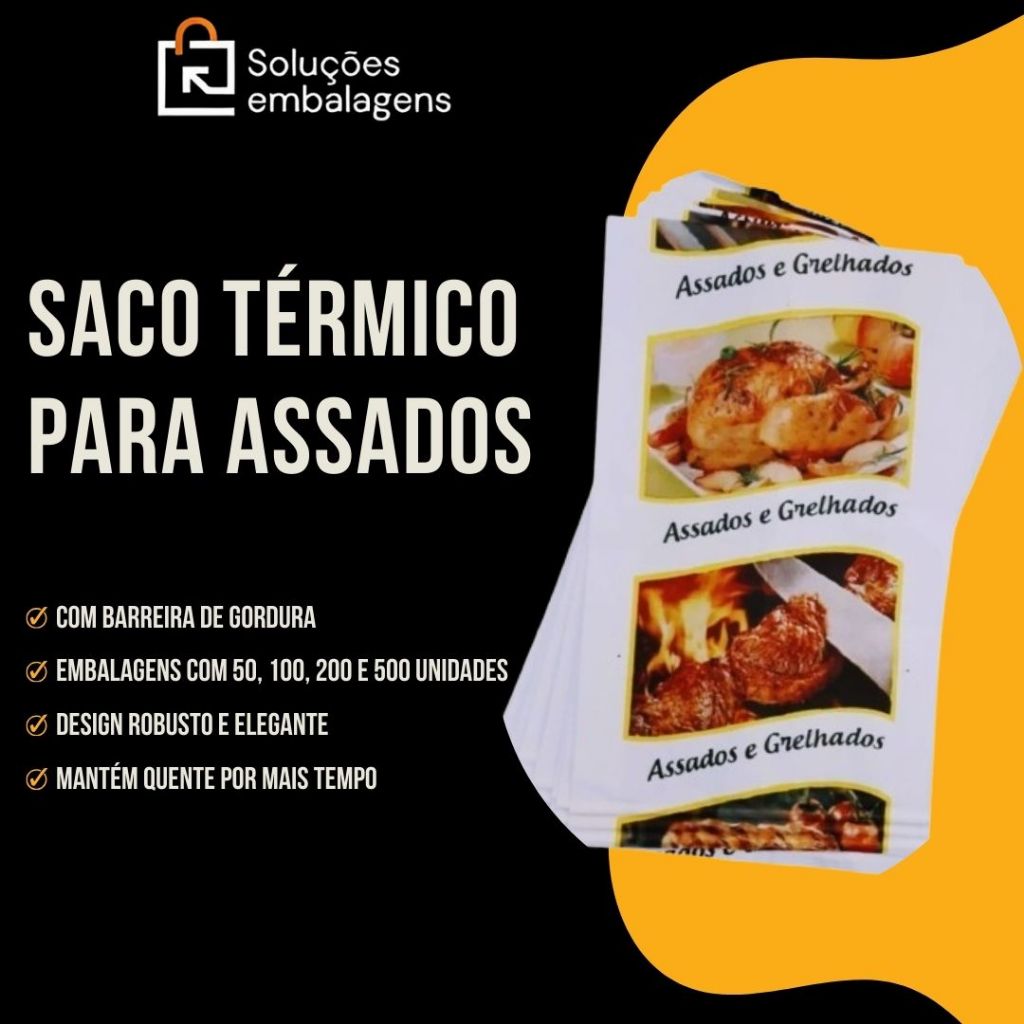 Embalagem Sacos Térmico P/ Frango Assado C/50 Estampado com Barreira de Gordura + Lacre de segurança