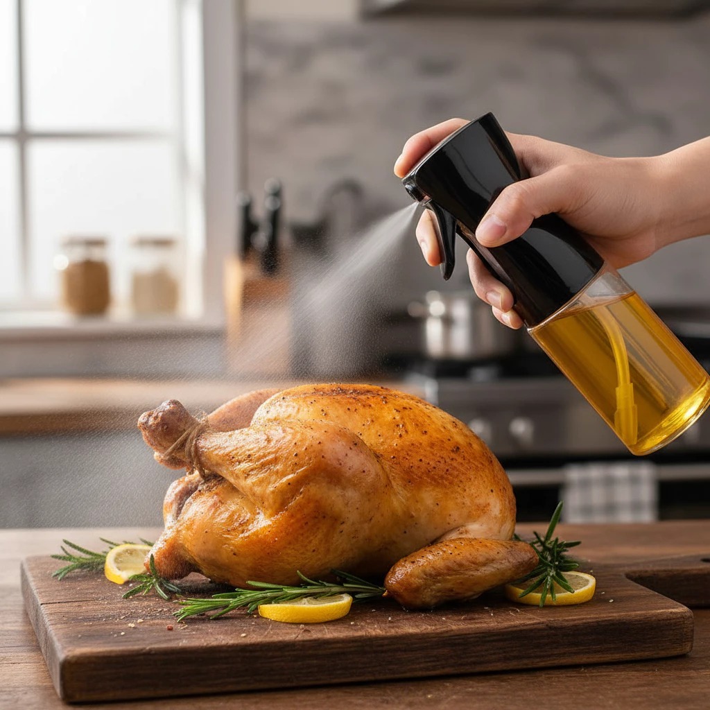 Kit 2 Spray Borrifador Azeite Óleo Vinagre Galheteiro 200ml Cor Preto e branco
