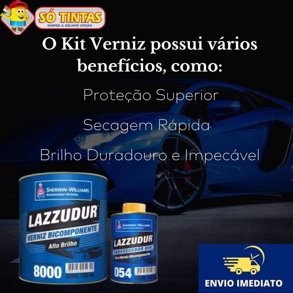 Verniz Bicomponente 8000 750ml + Endurecedor 054 150ml Alto Brilho Lazzuril – Uso Automotivo Kit