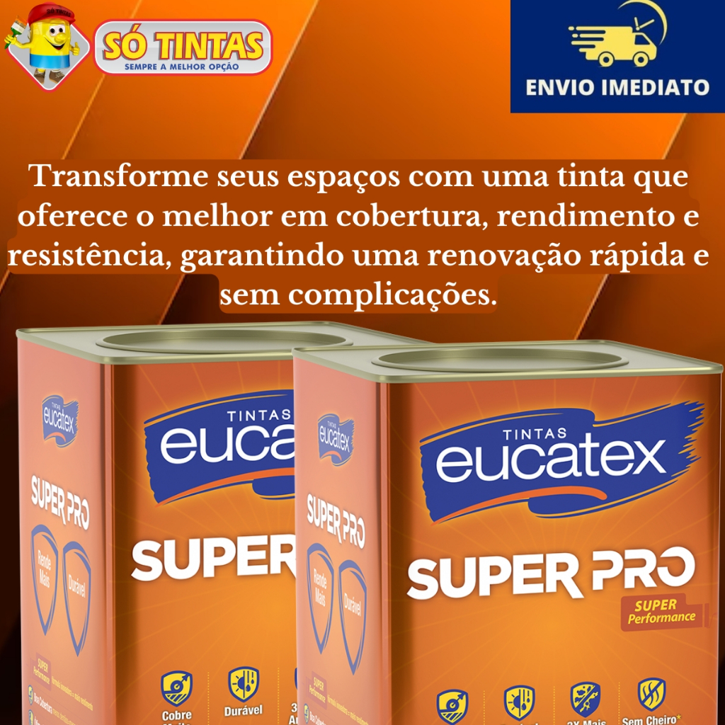 Tinta Acrílica Lavável Super Pró Semi Brilho 18L Eucatex, Interna e Externa, Antimofo, Várias Cores