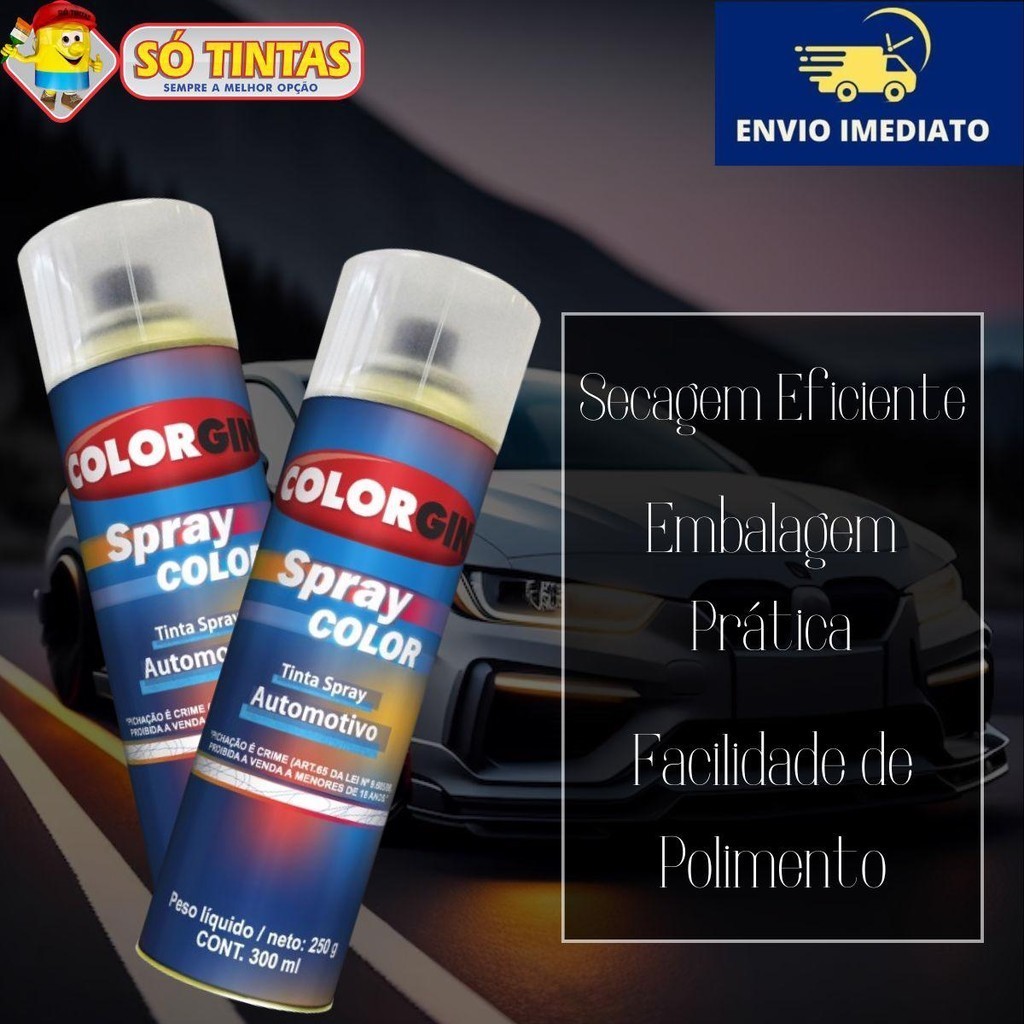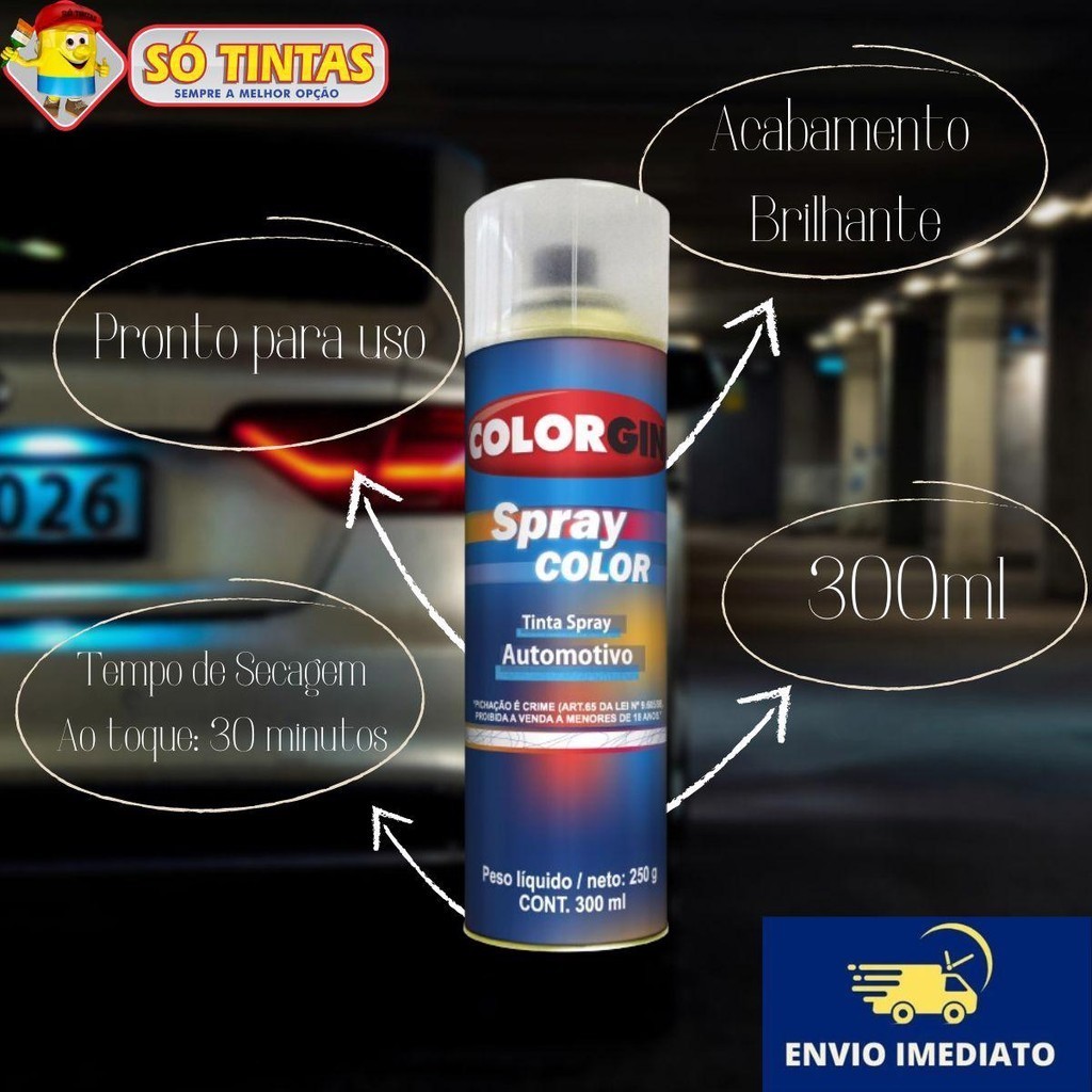Spray Automotivo Verniz Rápido 300ml Lazzuril Colorgin Acabamento Brilhante Incolor Secagem Imediata