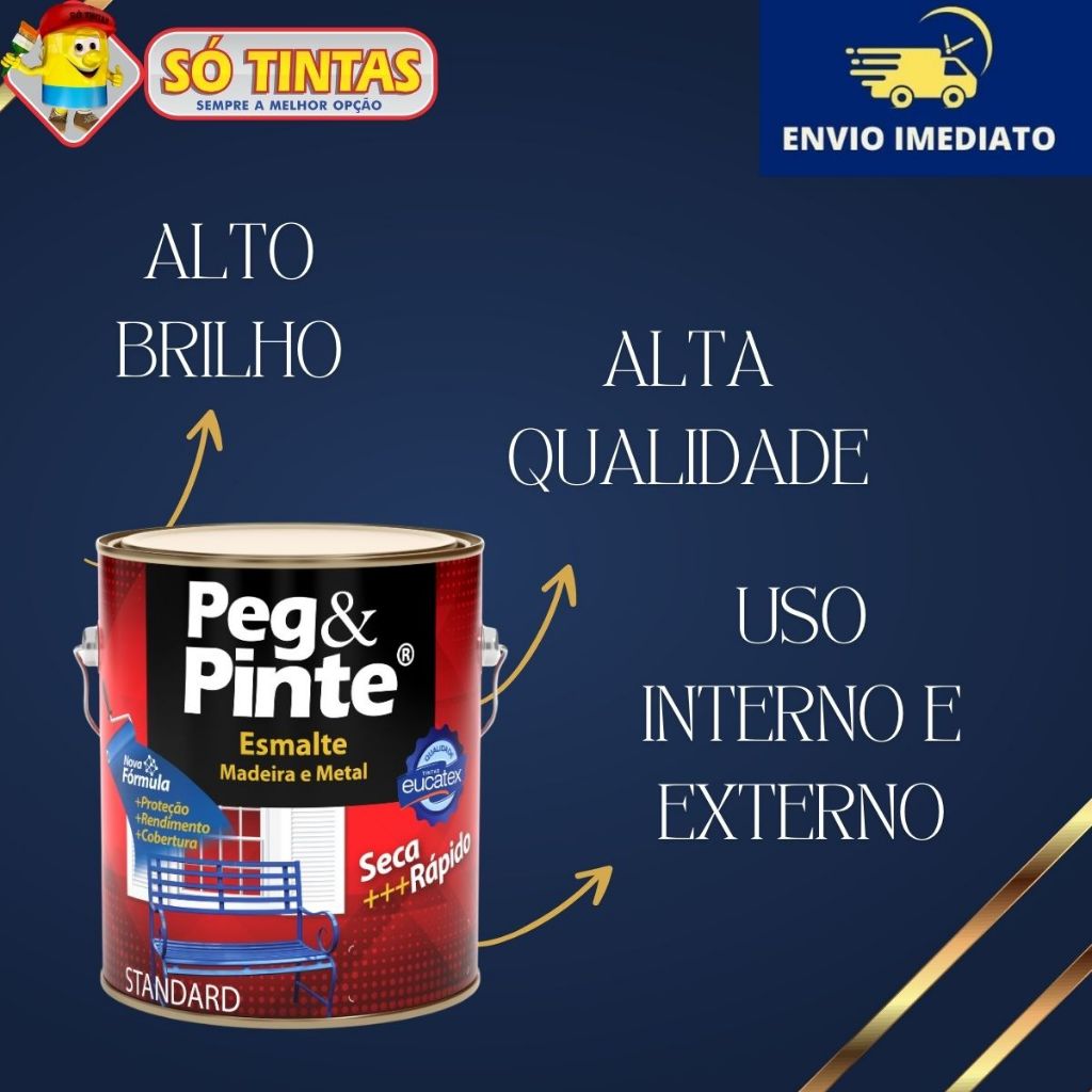 Tinta Esmalte Sintético Eucatex Pegue e Pinte 3,6 L, Madeira e Metal, Brilho Standard, Várias Cores
