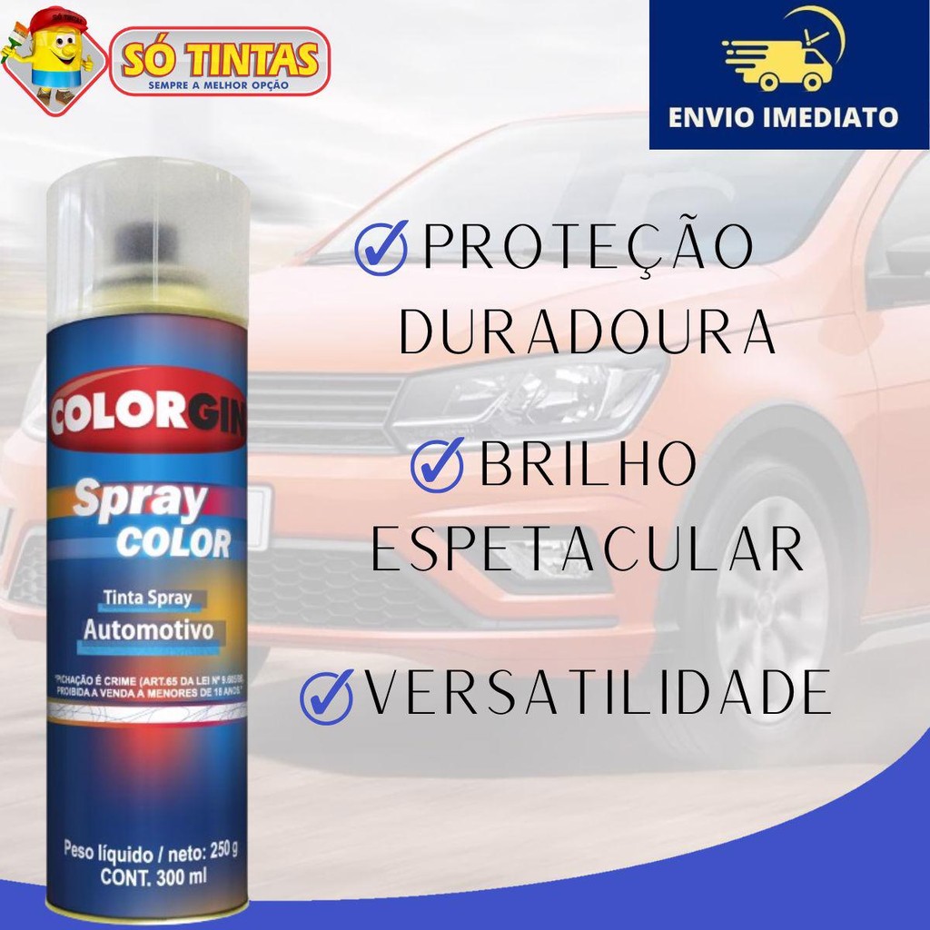 Kit 3 Sprays Automotivos Verniz Rápido 300ml Lazzuril Colorgin Incolor, Brilhante e Secagem Imediata
