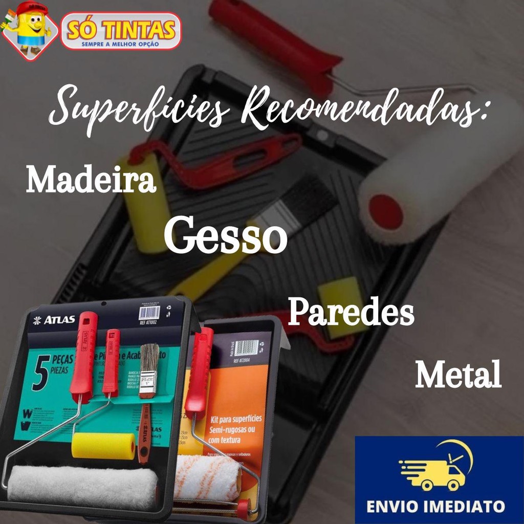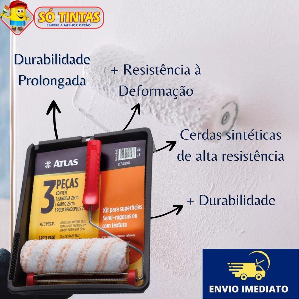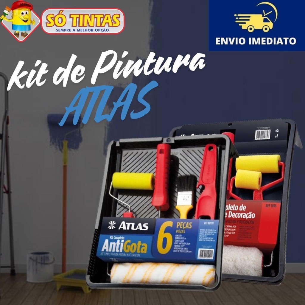 Kit de Pintura Atlas 3 a 7 Peças, Profissional Completo com Rolo, Trincha e Bandeja, Parede, Muros