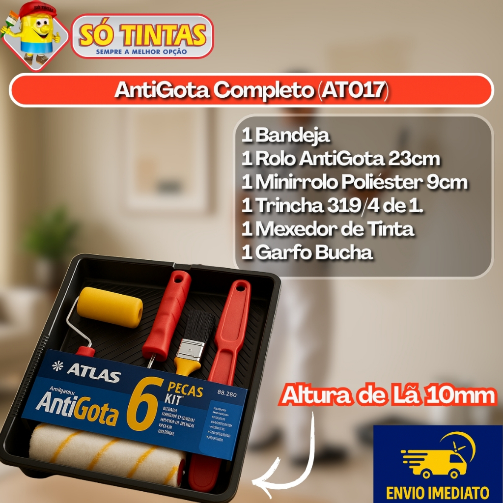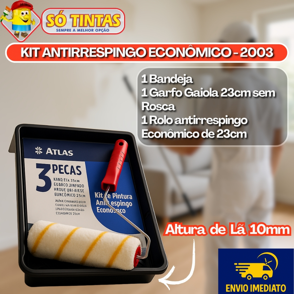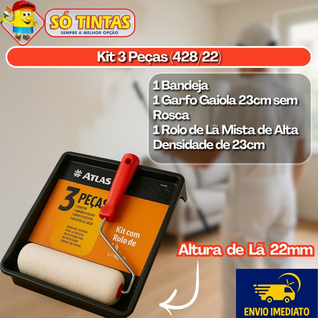 Kit de Pintura Atlas 3 a 7 Peças, Profissional Completo com Rolo, Trincha e Bandeja, Parede, Muros