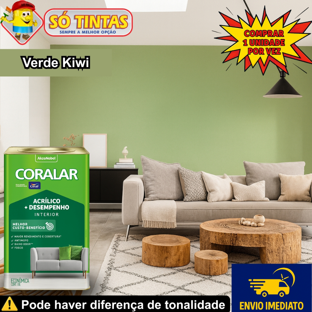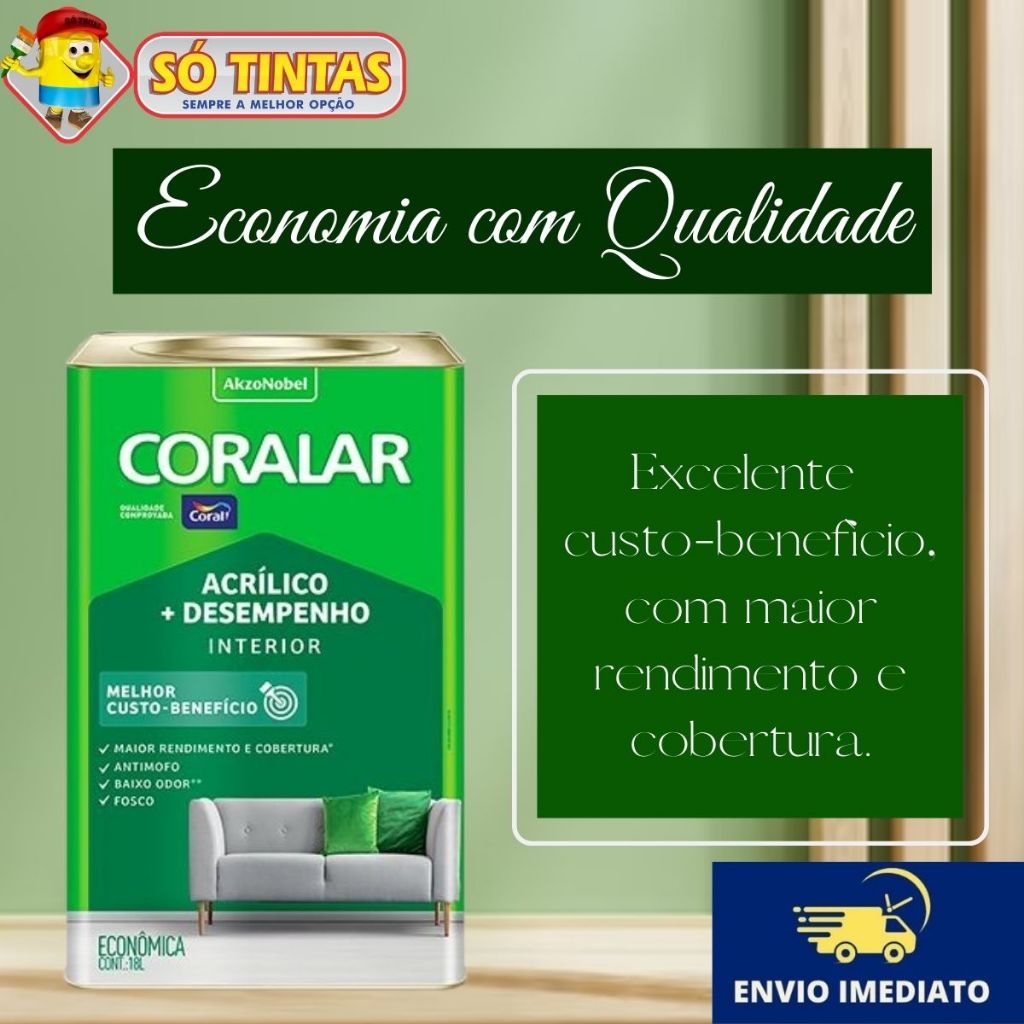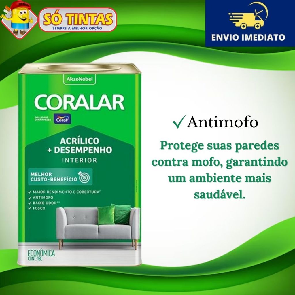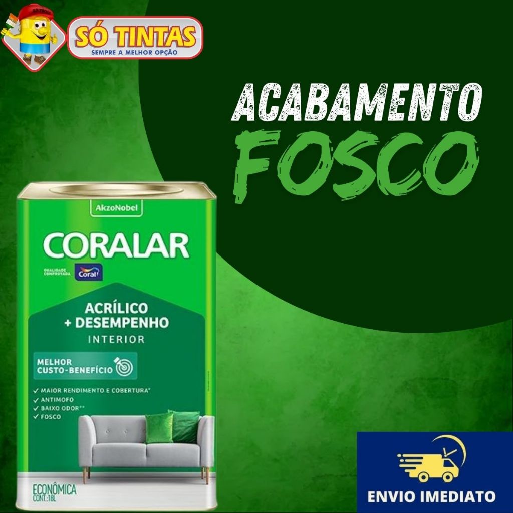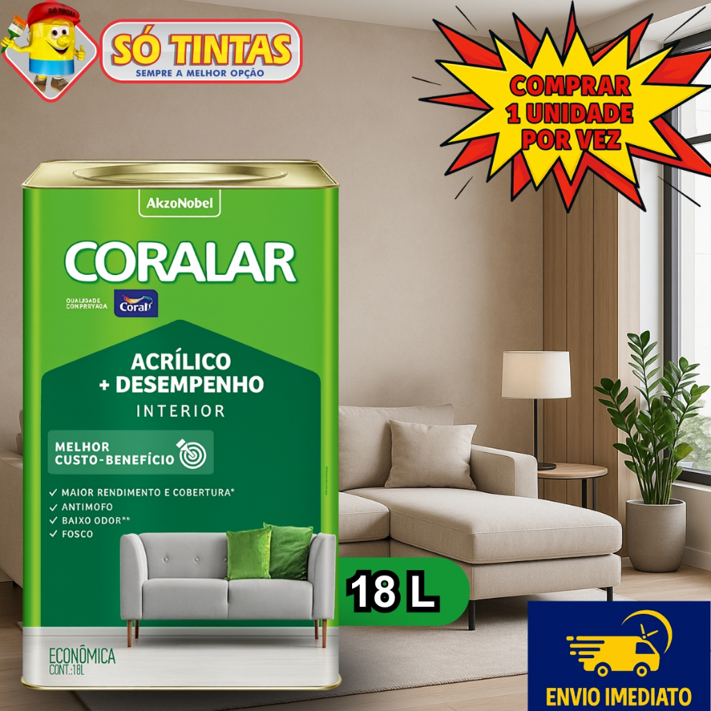 Tinta Acrílica Coralar Coral 18 L Fosca Interna Anti Mofo, Para Parede, Secagem Rápida Escolha a Cor