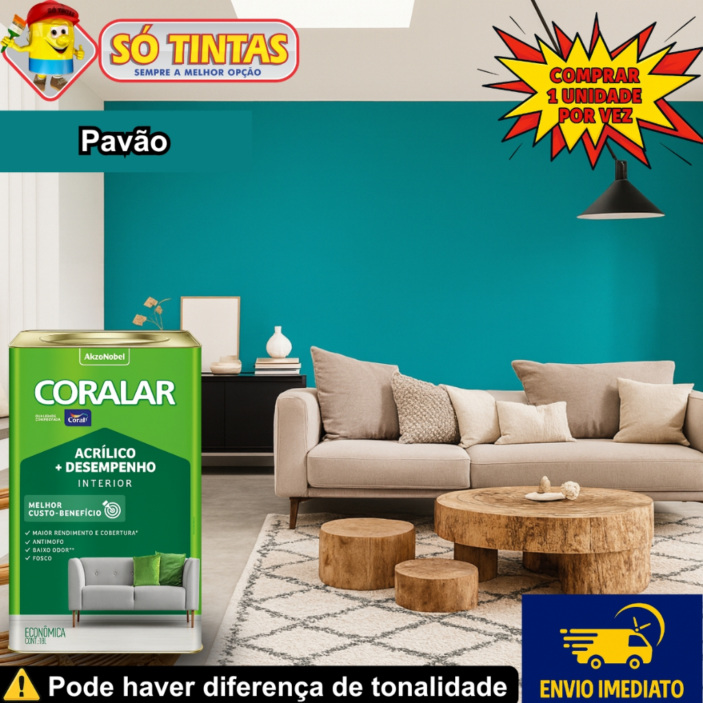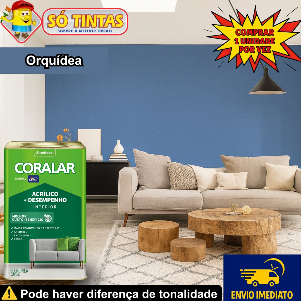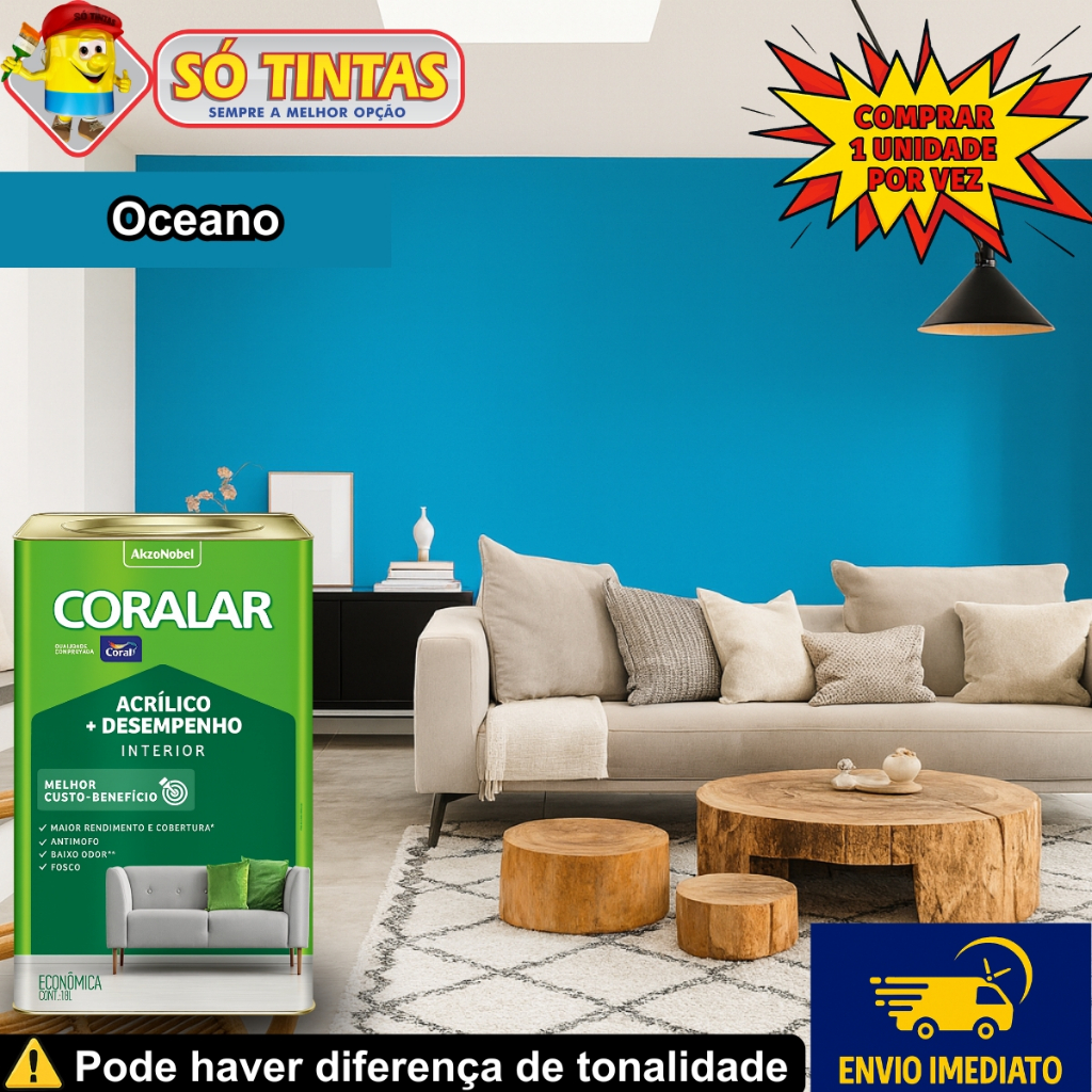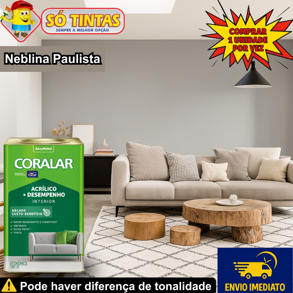 Tinta Acrílica Coralar Coral 18 L Fosca Interna Anti Mofo, Para Parede, Secagem Rápida Escolha a Cor