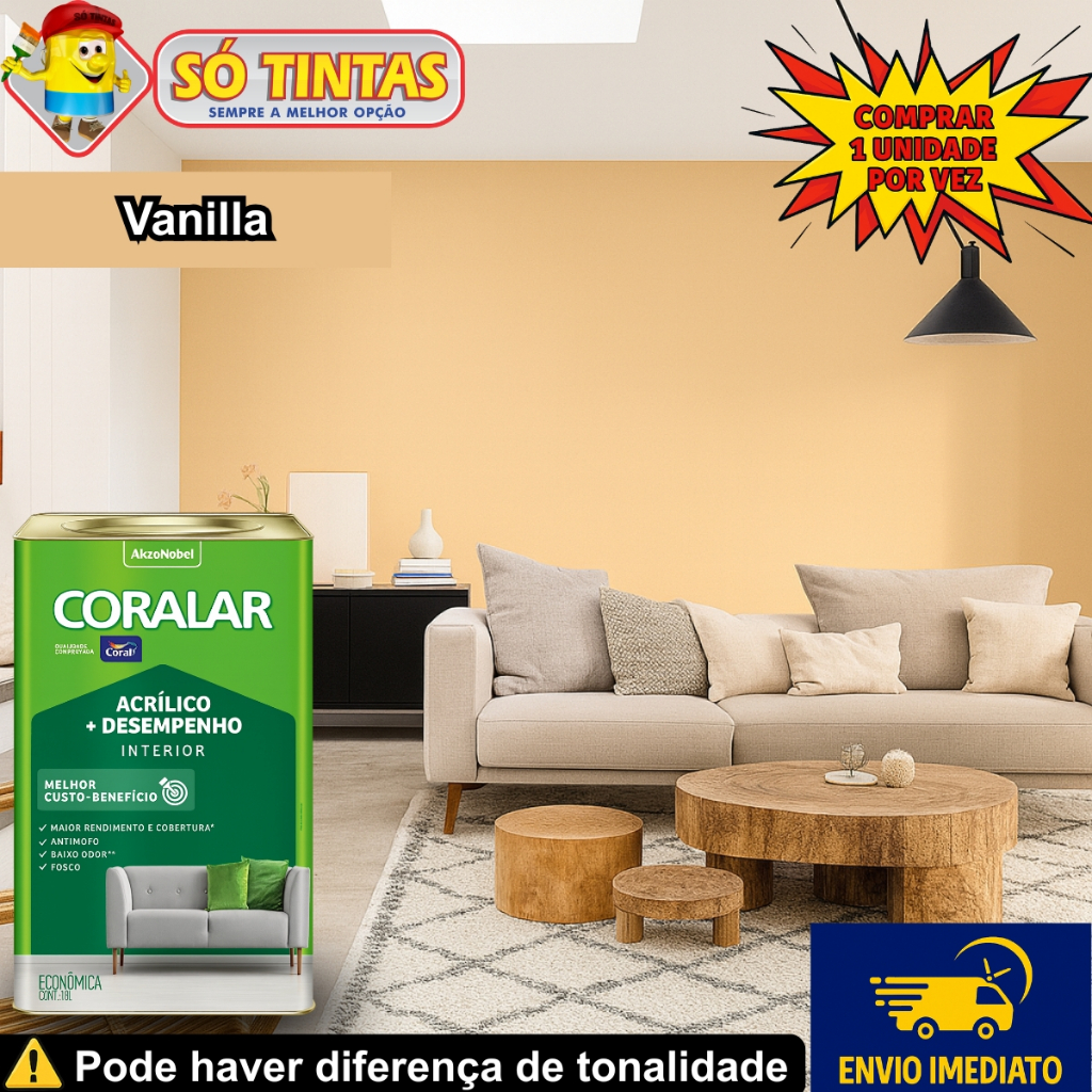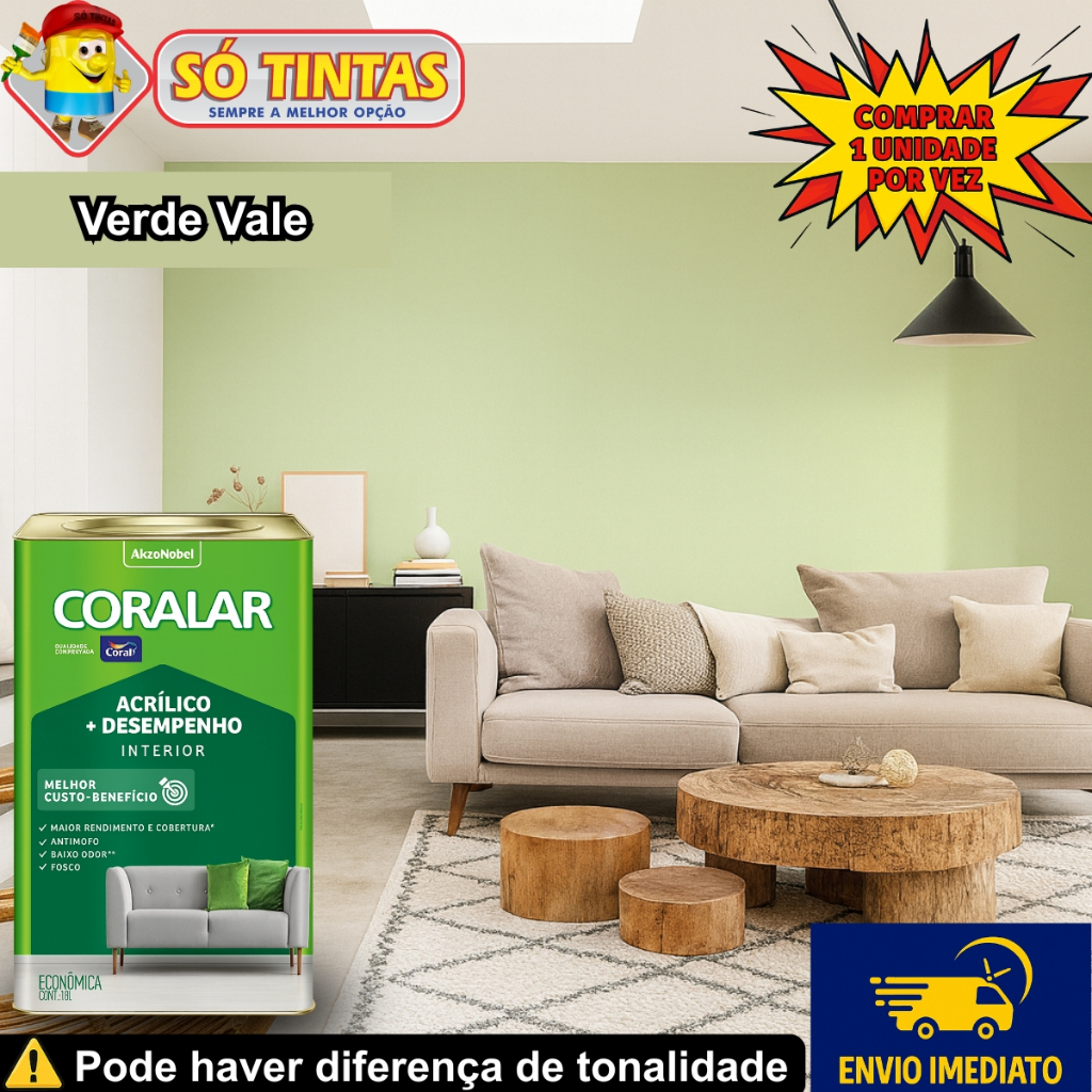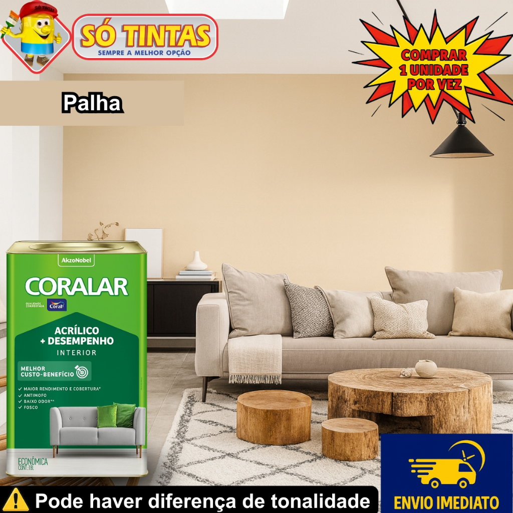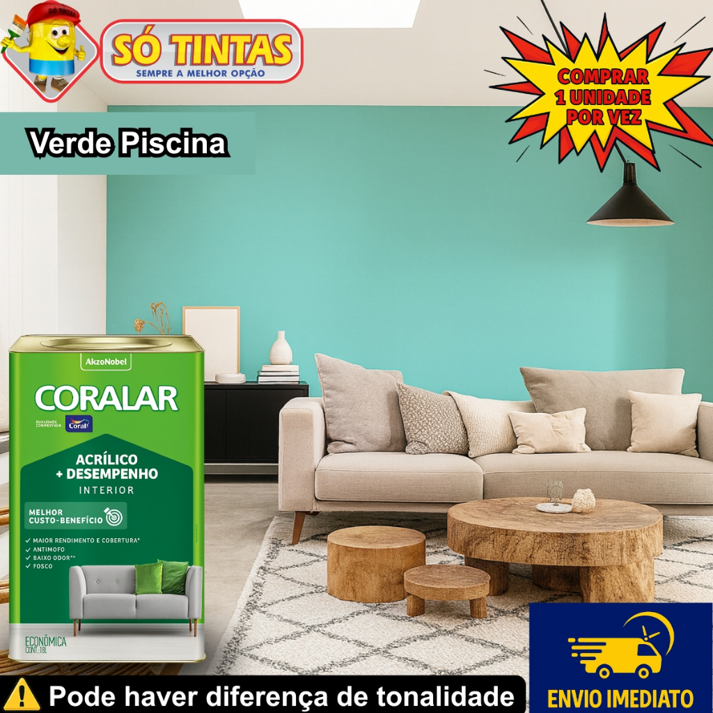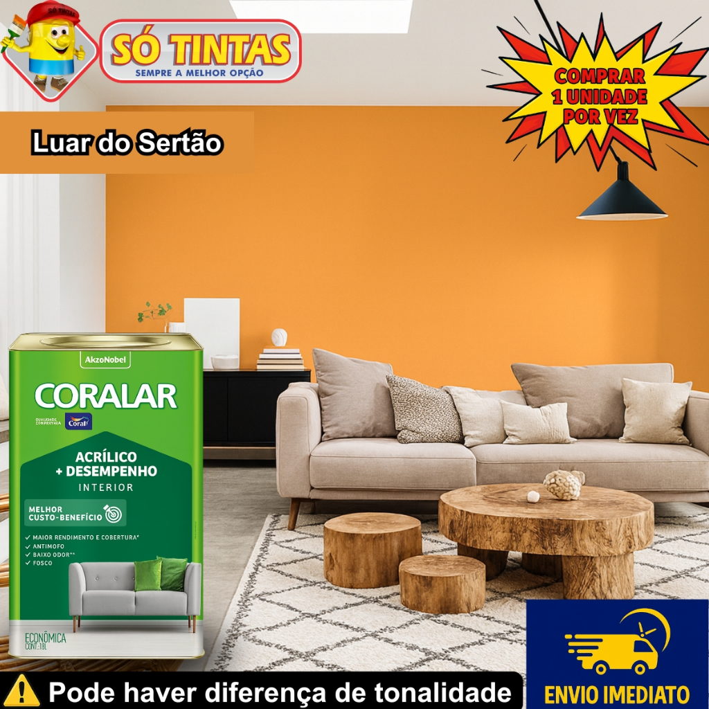 Tinta Acrílica Coralar Coral 18 L Fosca Interna Anti Mofo, Para Parede, Secagem Rápida Escolha a Cor