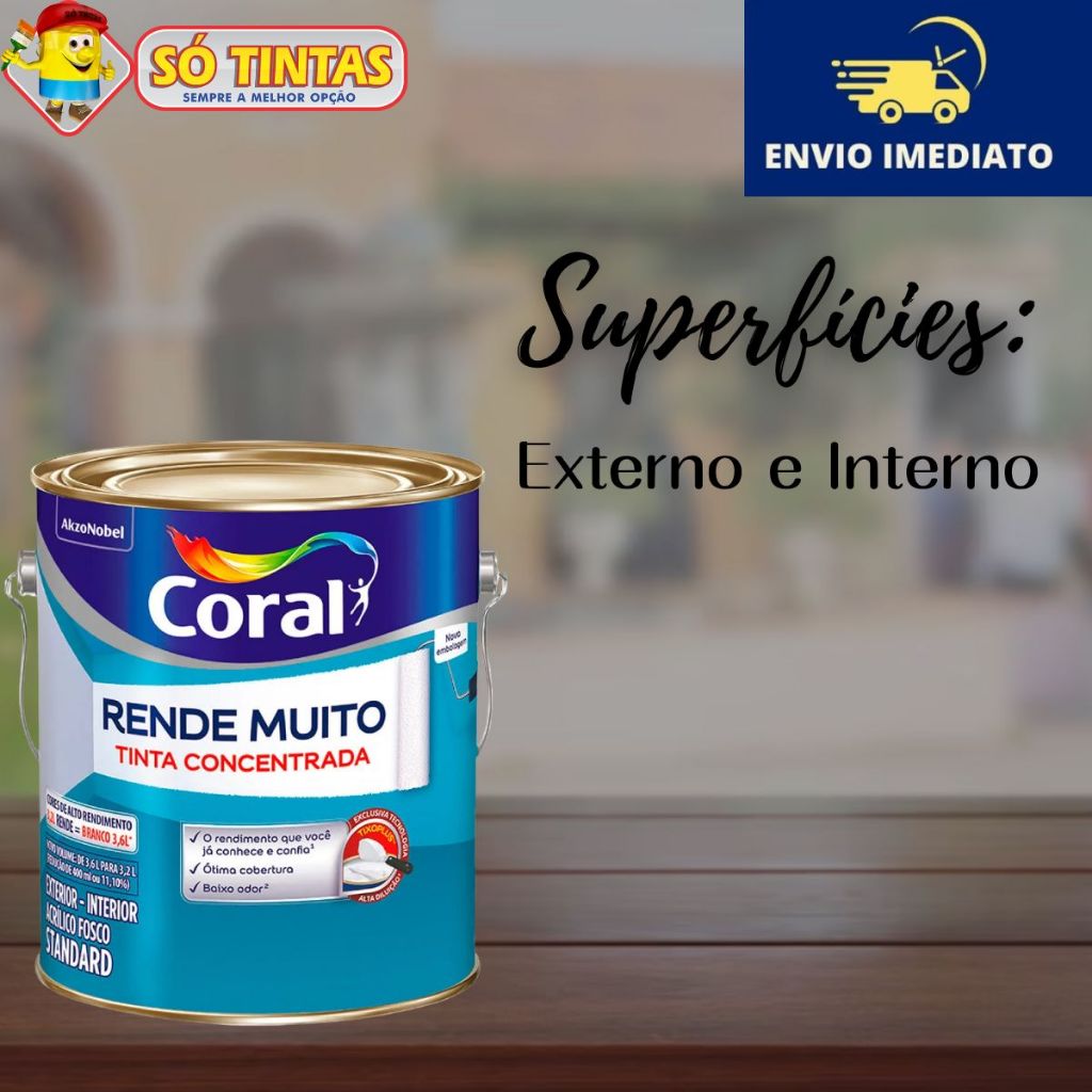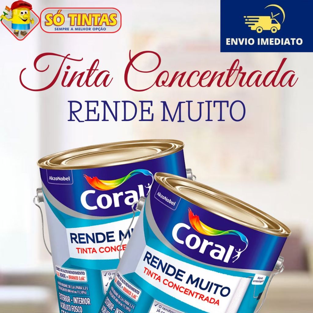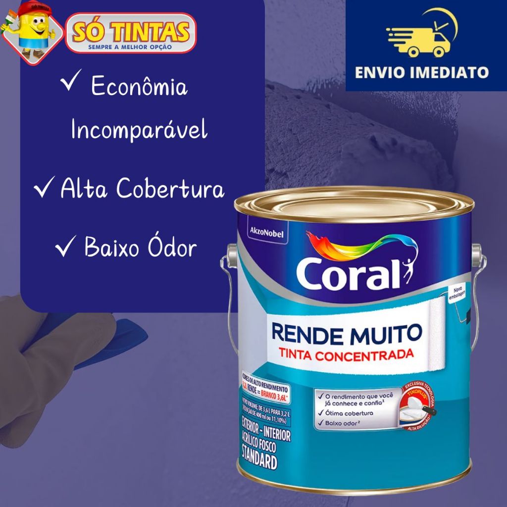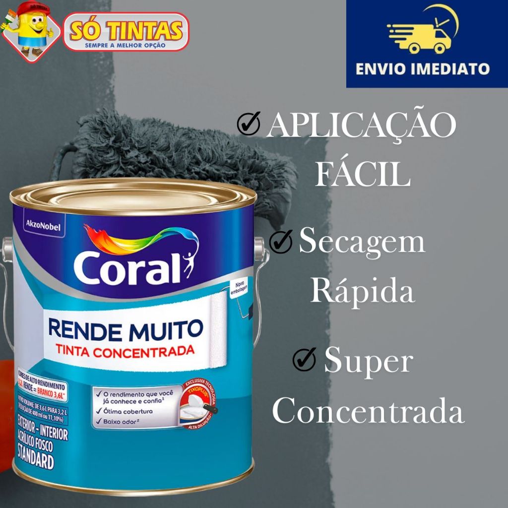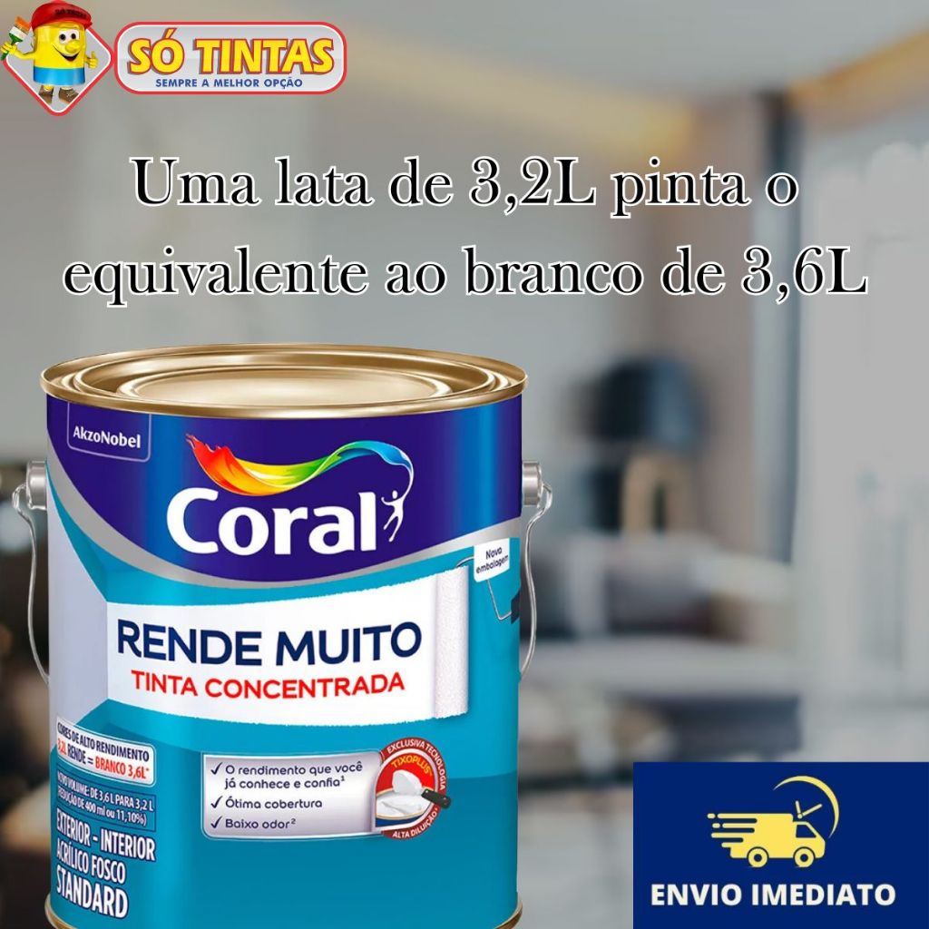 Tinta Acrílica Coral Rende Muito 3,2L e 3,6L Fosca Lavável Standard Rendimento Secagem Rápida, Cores