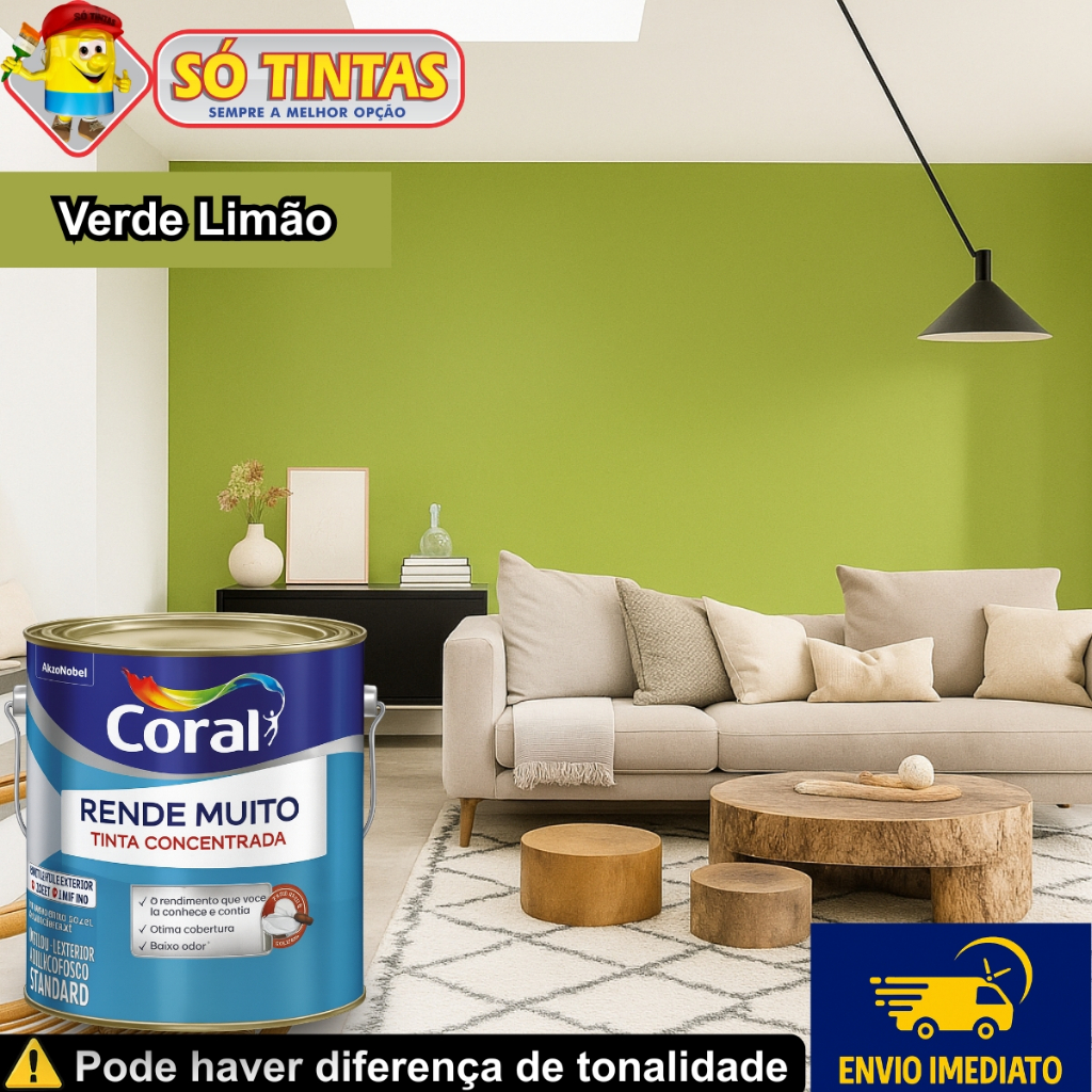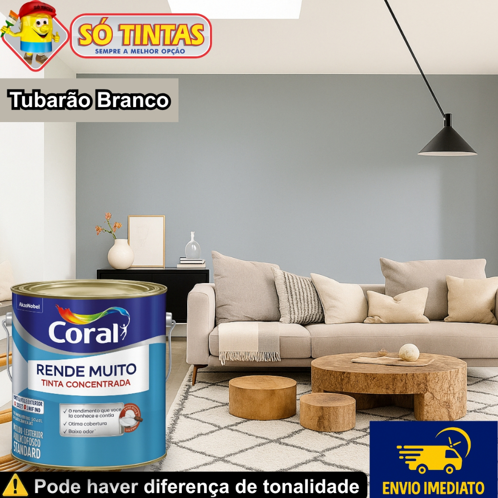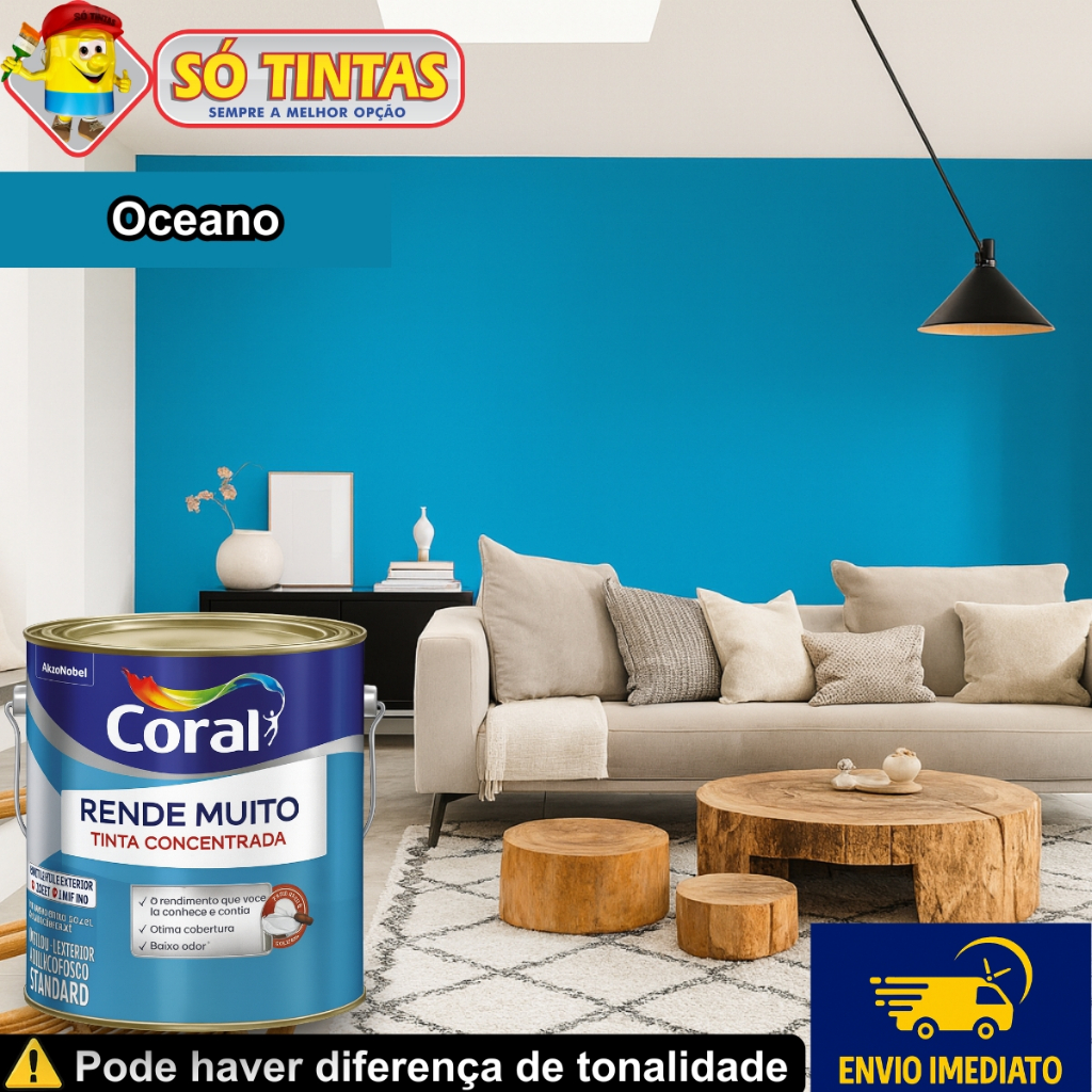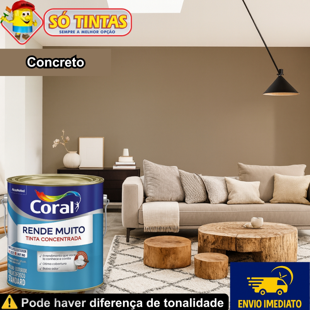 Tinta Acrílica Coral Rende Muito 3,2L e 3,6L Fosca Lavável Standard Rendimento Secagem Rápida, Cores