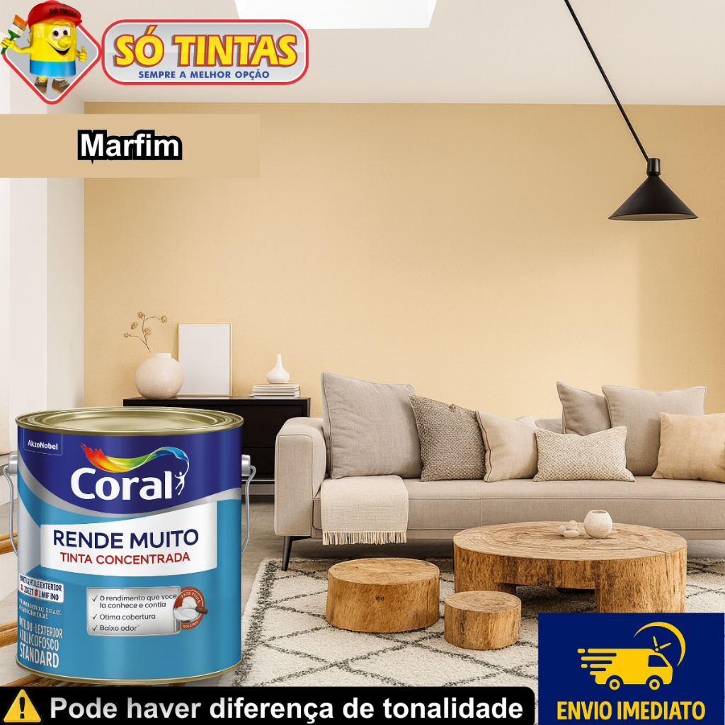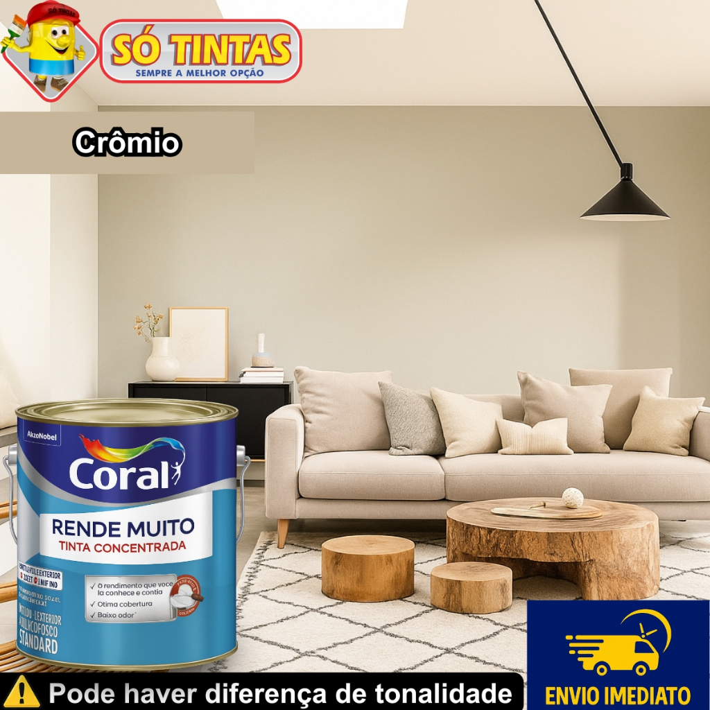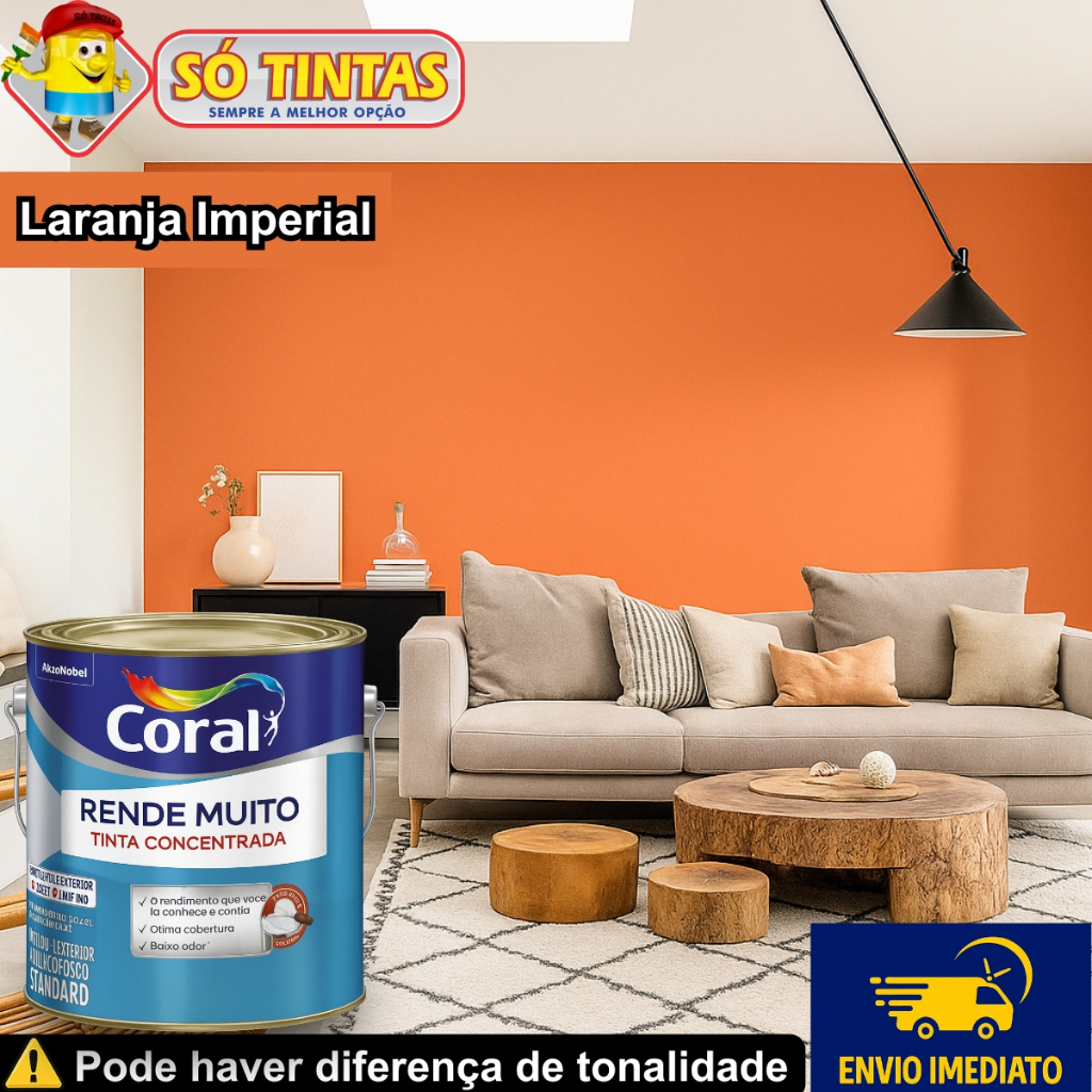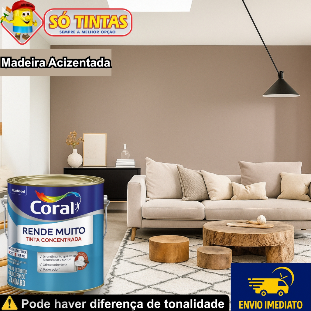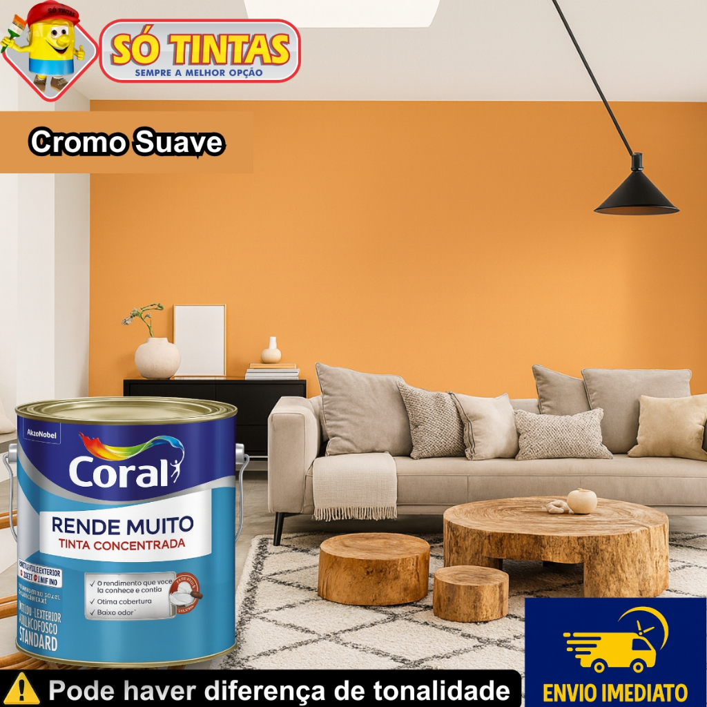Tinta Acrílica Coral Rende Muito 3,2L e 3,6L Fosca Lavável Standard Rendimento Secagem Rápida, Cores