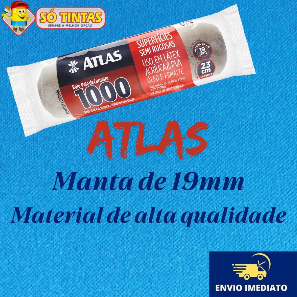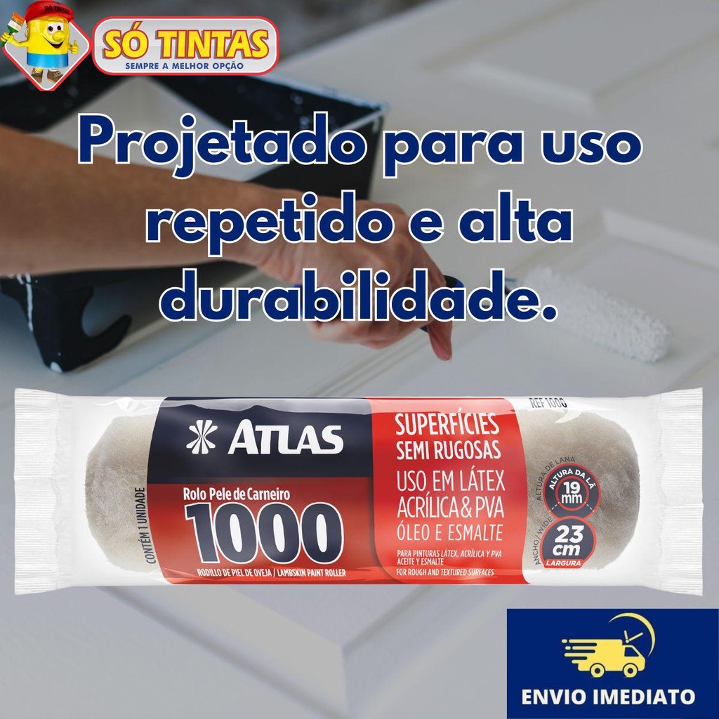 Rolo de Pintura Pele de Carneiro 1000 Atlas 23cm Para Tintas Látex, Acrílica, PVA, Óleo e Esmaltes.