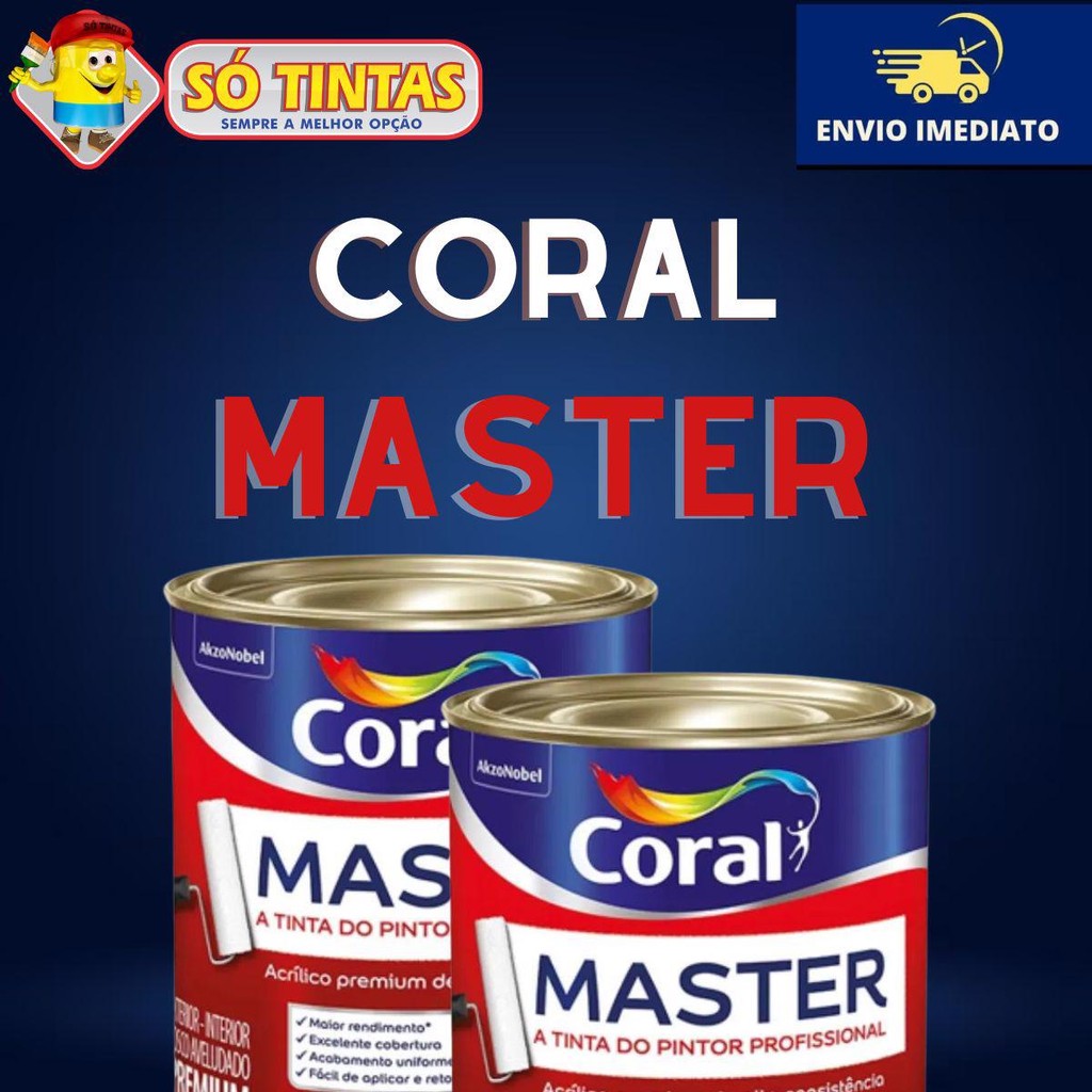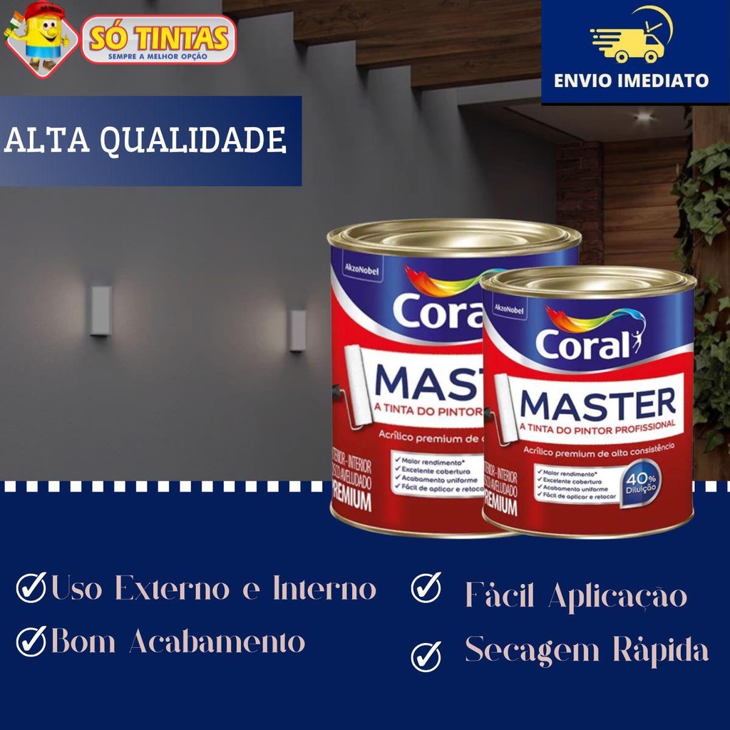 Tinta Acrílica Master Premium Lavável Profissional Secagem Rápida Branco Fosco 900ml – Coral