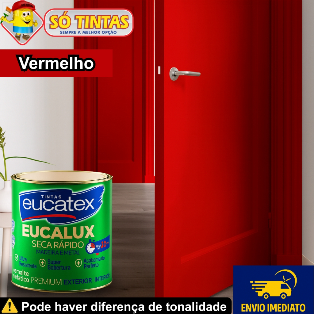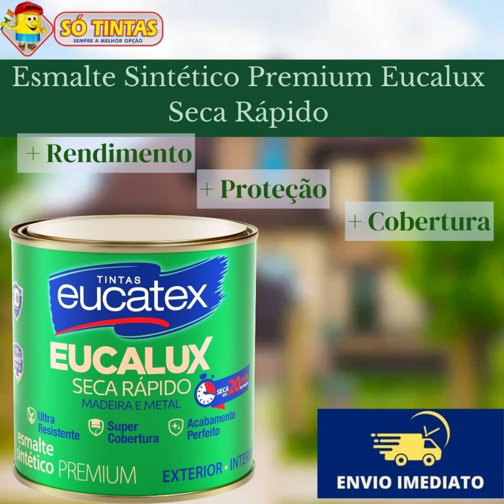 Tinta Esmalte Sintético Eucalux Eucatex 225 ML Brilhante, Secagem Rápida Madeira Metal, Várias Cores