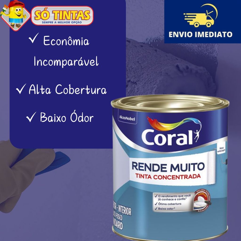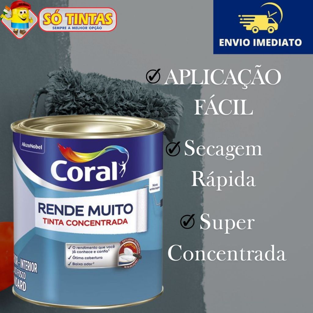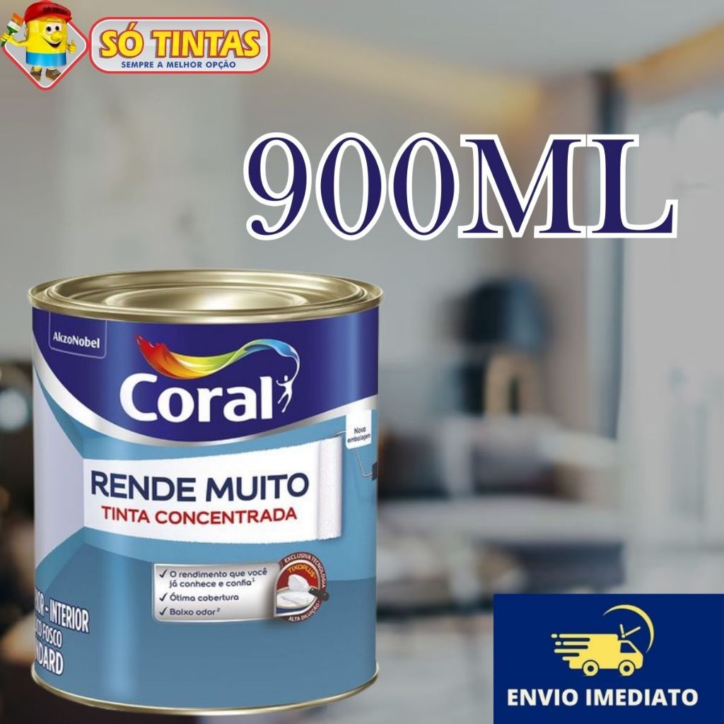 Tinta Acrílica Coral Rende Muito 900 ML Fosca Lavável Standard Rendimento, Secagem Rápida, Cores