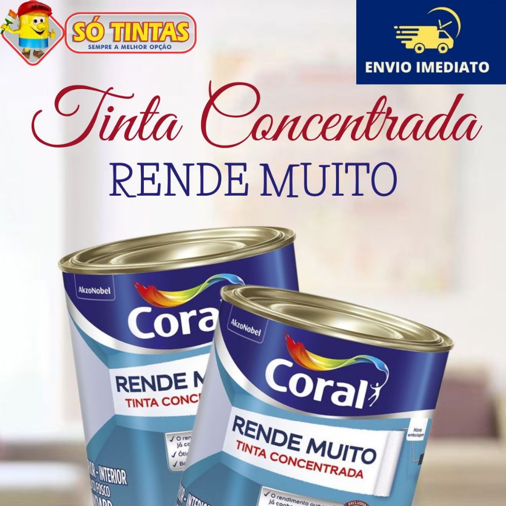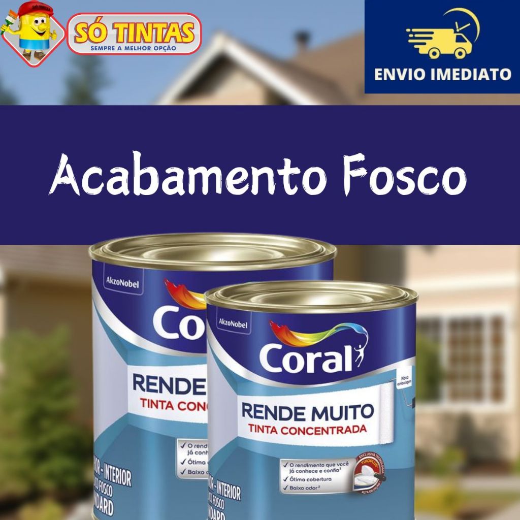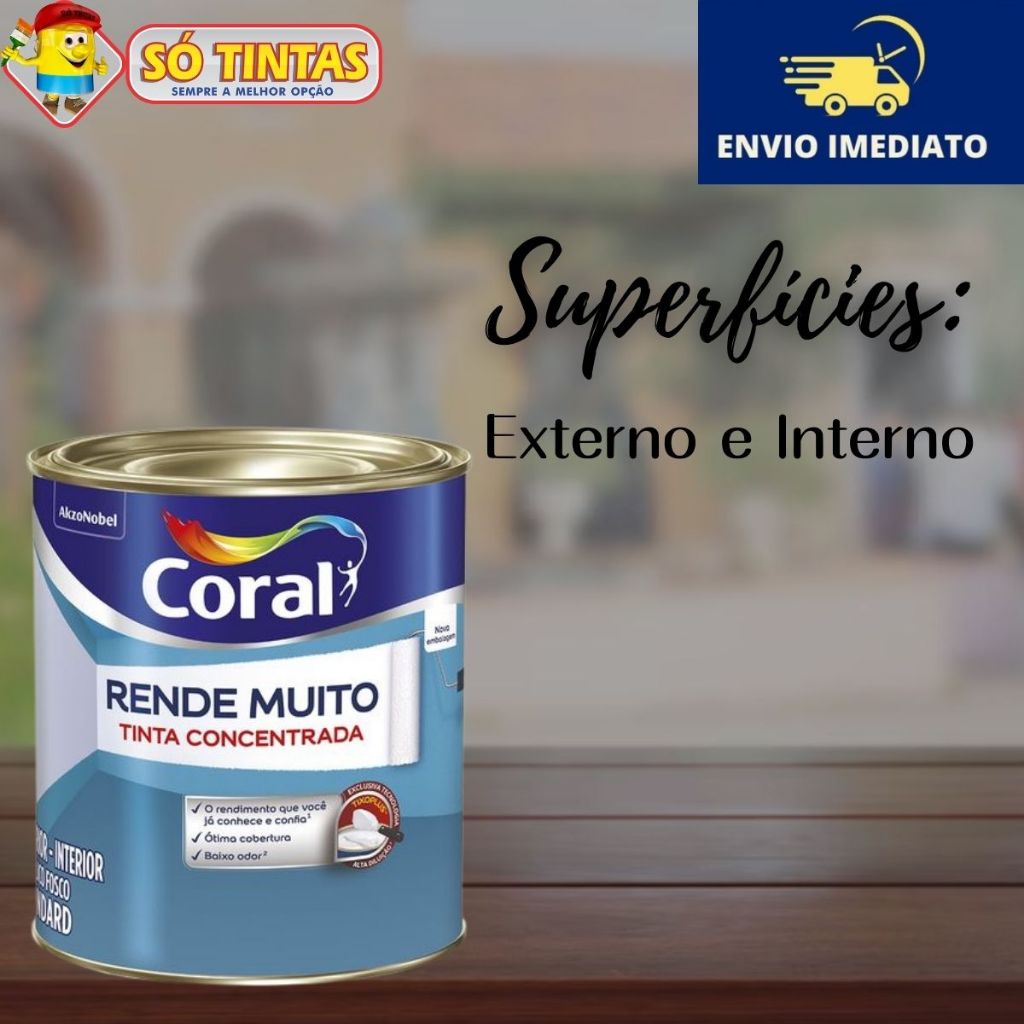 Tinta Acrílica Coral Rende Muito 900 ML Fosca Lavável Standard Rendimento, Secagem Rápida, Cores