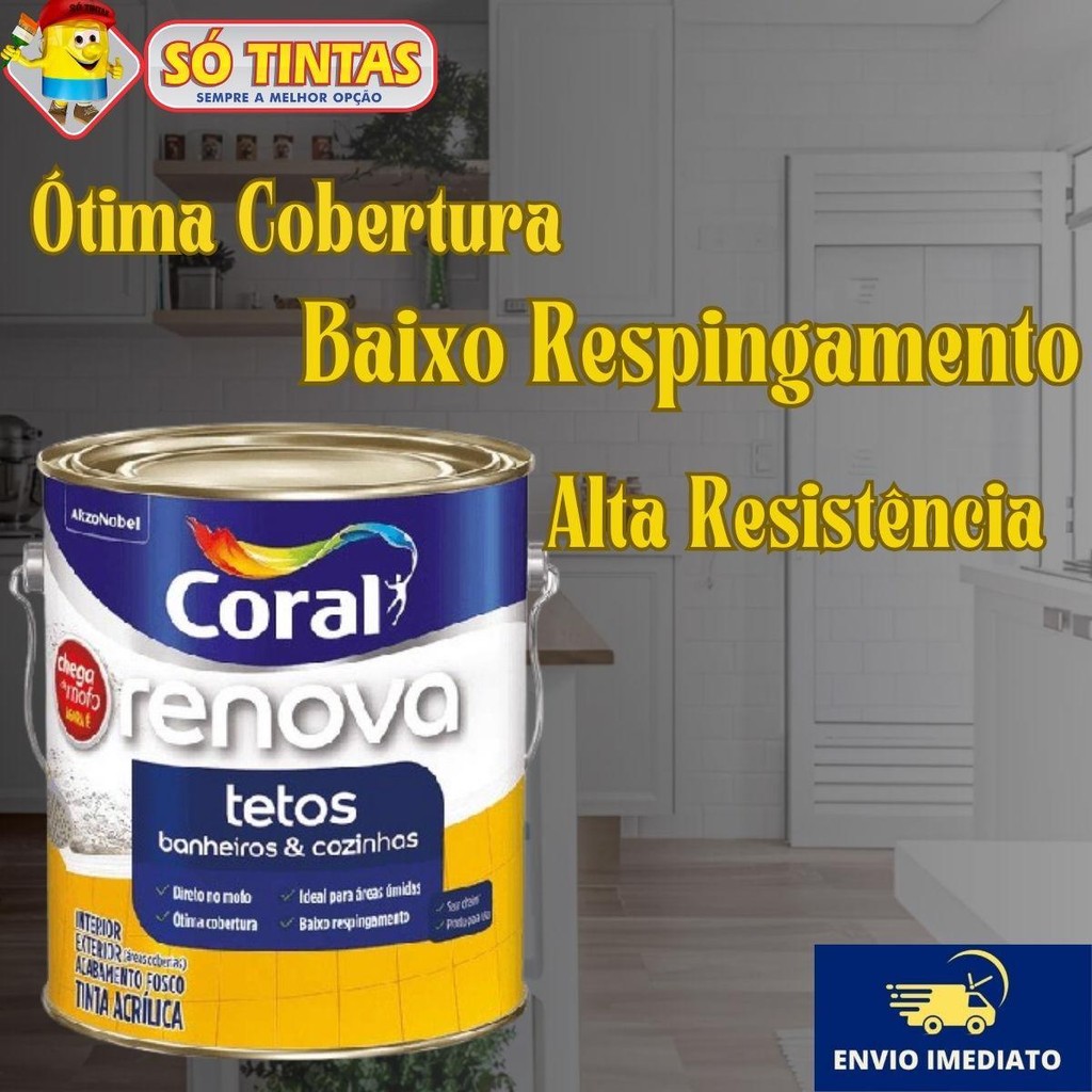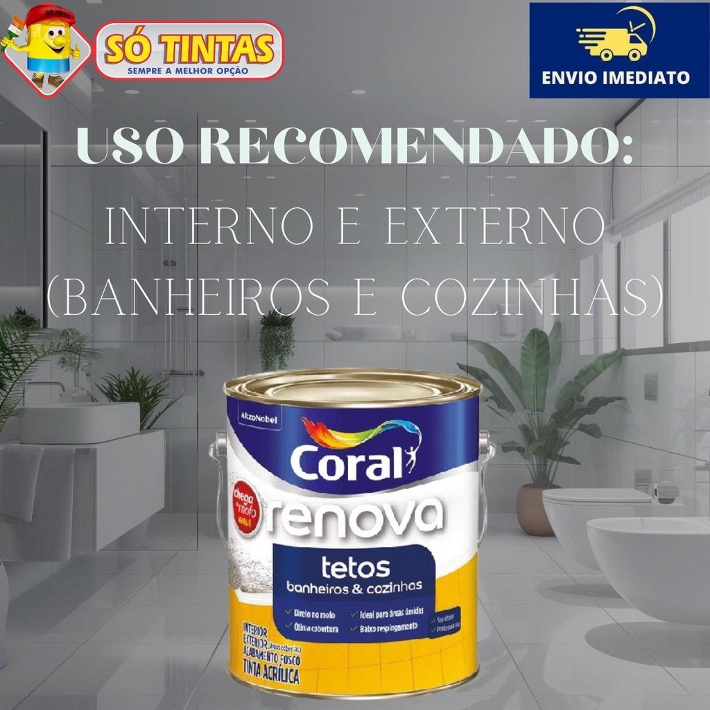 Tinta Acrílica Renova Tetos Banheiros e Cozinhas Fosco Antimofo Branco 3,6L Lavável Coral