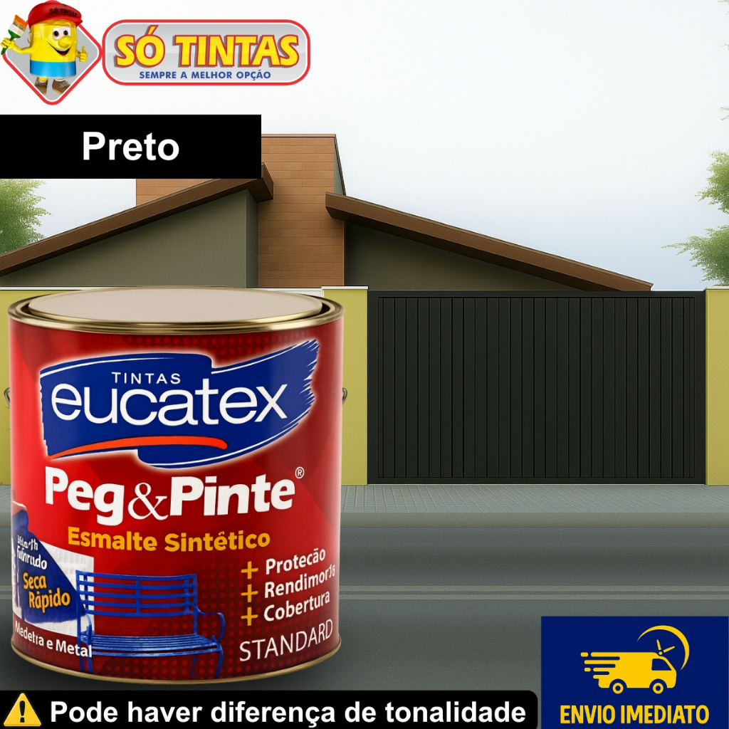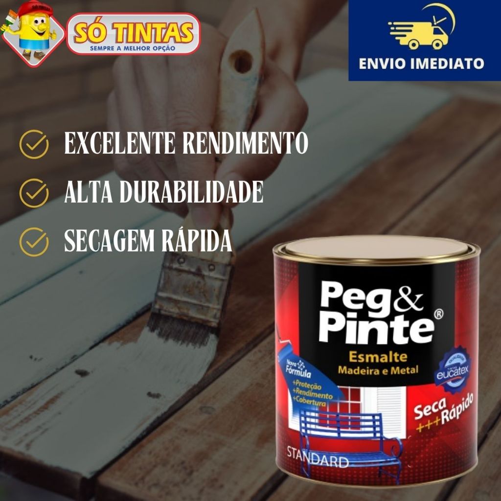 Tinta Esmalte Sintético Eucatex Pegue e Pinte 900 ML, Madeira e Metal, Brilho Standard, Várias Cores
