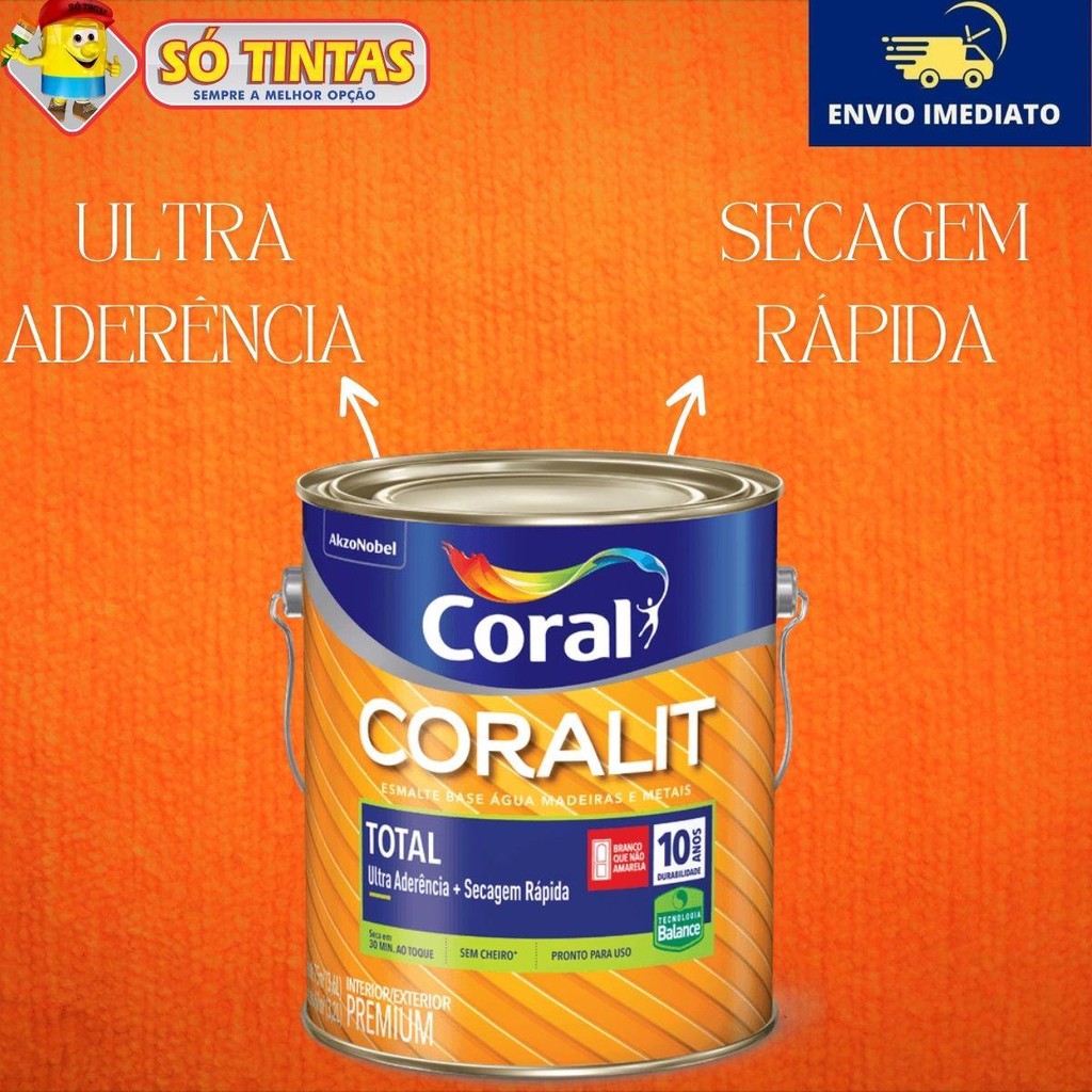 Tinta Esmalte Coralit Total Brilhante Base Água Secagem Rápida Balance 3,6 Litros Coral Várias Cores