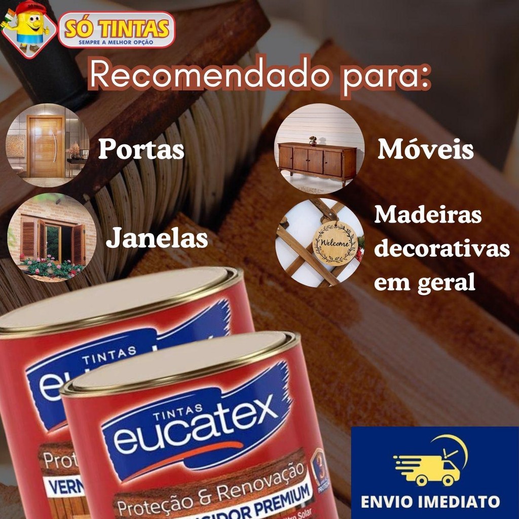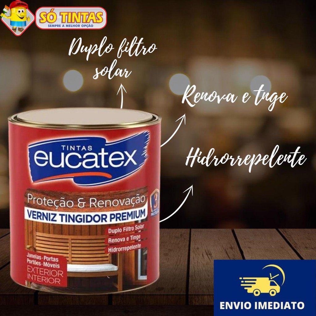 Verniz Tingidor Brilhante Eucatex 900ml Proteção e Renovação Uso Interno e Externo