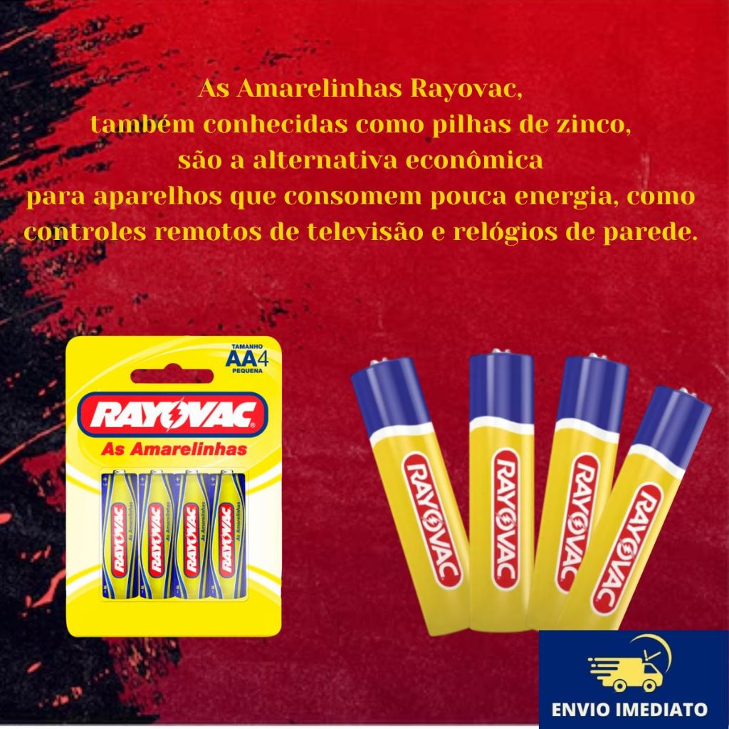Pilhas As Amarelinhas Rayovac Tamanho AA4 - Cartela com 4