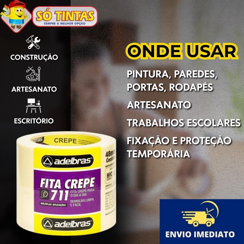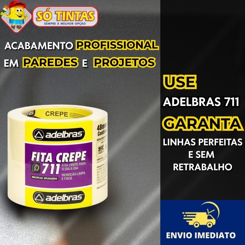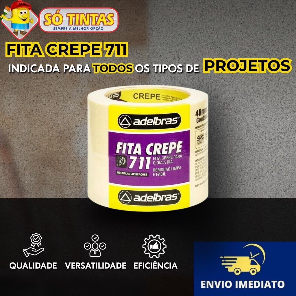 Kit 2 Fita Crepe Adelbras 711 Uso Geral 48mm x 40m – Rolos para Pintura, Artesanato e Uso Escolar