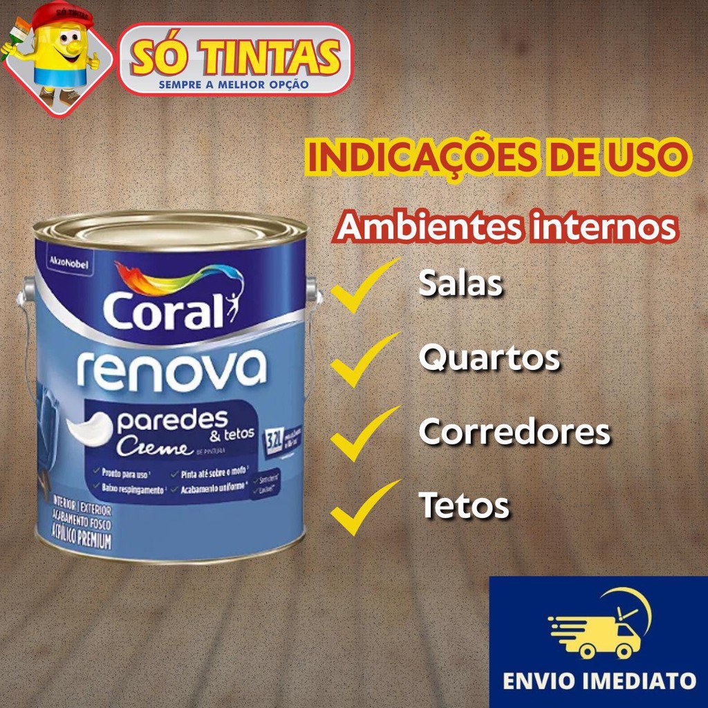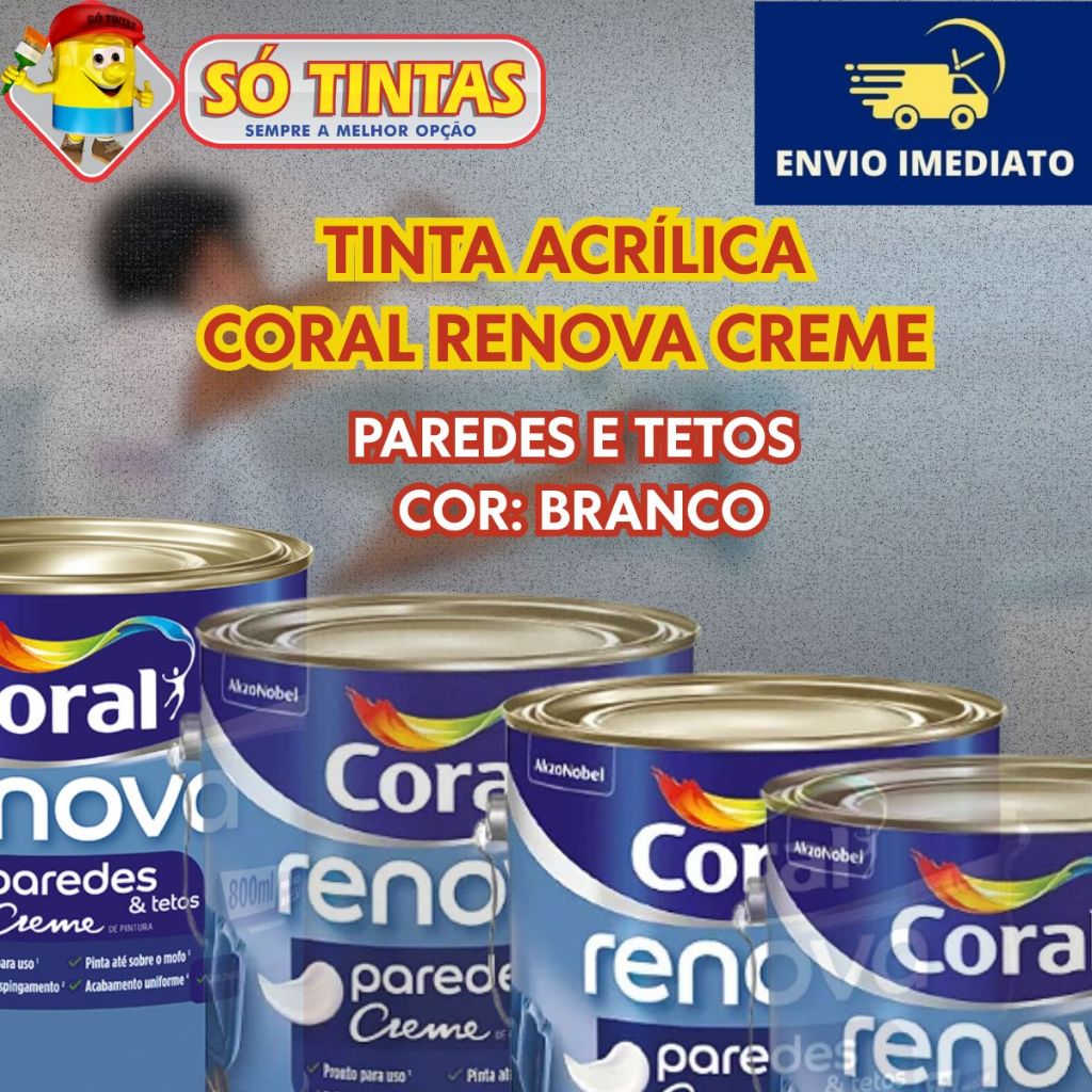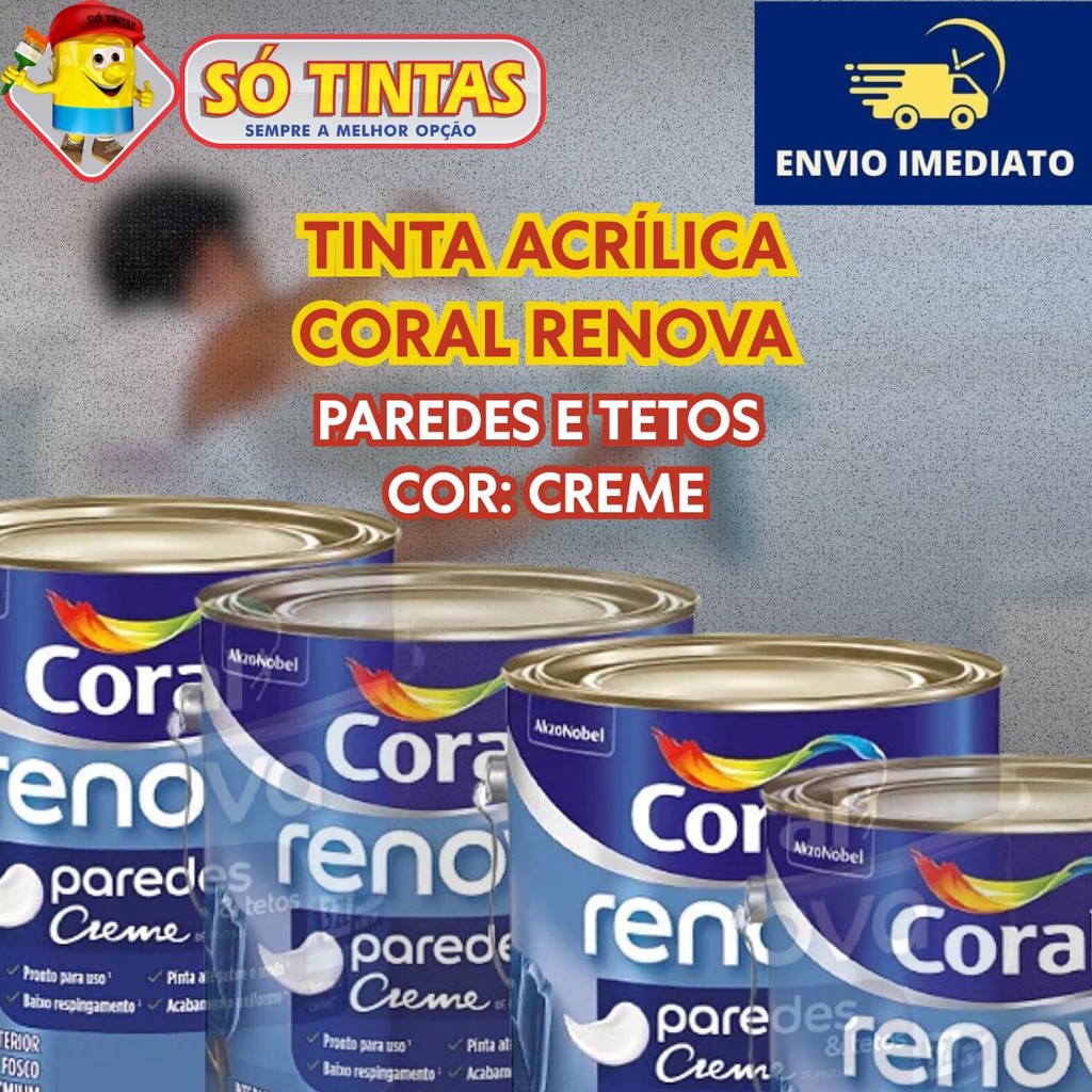 Tinta Acrílica Coral Renova Branco 3,2L Ideal para Paredes e Tetos Anti Mofo e Lavável