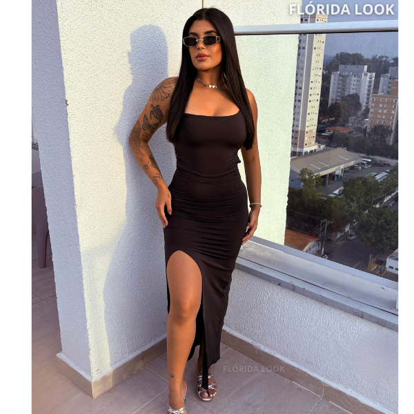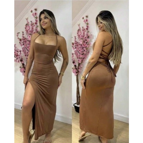 NOVO Vestido Colado LONGO SUPLEX Com Fenda Costas nuas Trançadas Elegante Empina Bumbum !