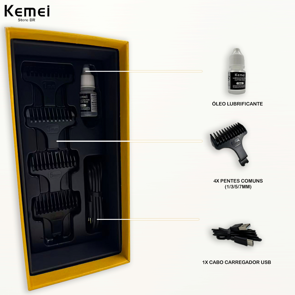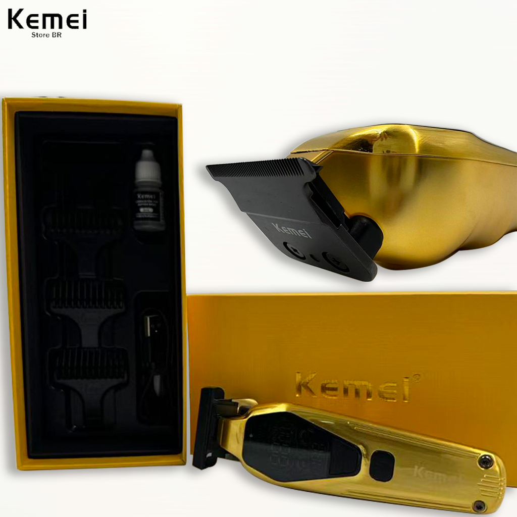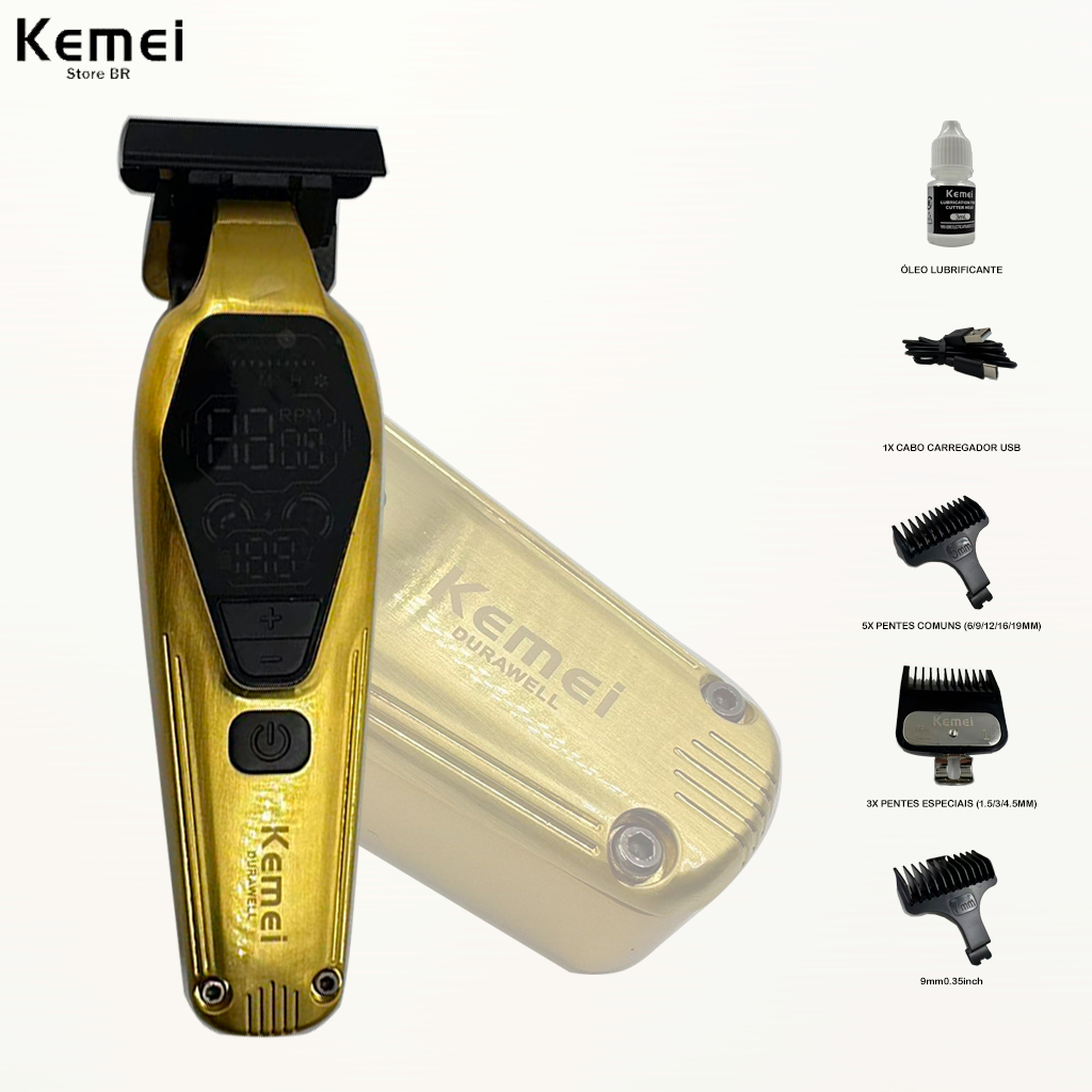 Aparador de barba Kemei 1697 9000 RPM lâmina totalmente metálica com revestimento DLC visor LED